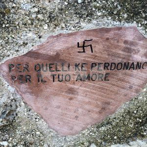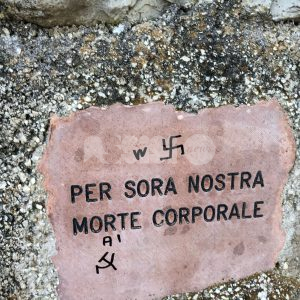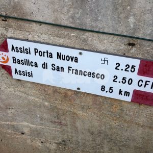 Molteplici svastiche con la scritta Morte ai komu (morte ai comunisti, ndr) e w il nazismo su almeno un paio di edicole e sui cartelli stradali, in via degli Olivi, detta anche via Stradetta, la strada che da Spello porta ad Assisi. E anche offese a San Francesco, con un epiteto volgare e una freccia che indica espressamente il Santo. Succede come detto nel percorso degli ulivi tra Spello e Assisi, lungo la stradetta della Maestà di Mascicone. Sull’episodio sono in corso gli accertamenti dei carabinieri, allertati dai cittadini e anche da articoli di giornale.