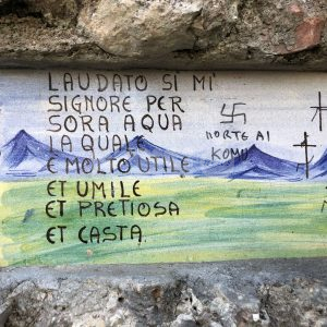 Ora il caso di Spello, per cui il capogruppo Lega in Regione Umbria, Stefano Pastorelli, esprime “totale disapprovazione e profondo disgusto” per le scritte offensive opera di ignoti apparse sull’edicola votiva del XV secolo, situata tra Assisi e Spello, dove vengono citate frasi e rappresentazioni della vita di San Francesco e immagini che rimandano al Cantico delle Creature. “Ad essere danneggiato è stato il patrimonio culturale e identitario di Assisi – prosegue Pastorelli – non esistono giustificazioni per un atto criminale come questo frutto di becera ignoranza. Credo che l’episodio non abbia nulla a che vedere con il fascismo o il comunismo, siamo di fronte a un gesto deplorevole e ignobile di vandali che meritano di essere destinati non solo a lavori socialmente utili, ma a un ripasso approfondito della storia della città e della vita del Poverello. In questo modo magari imparerebbero ad apprezzare il profondo significato del messaggio di San Francesco, il suo legame con la città di Assisi e capirebbero la gravità del loro comportamento. Mi auguro vengano presto identificati”.