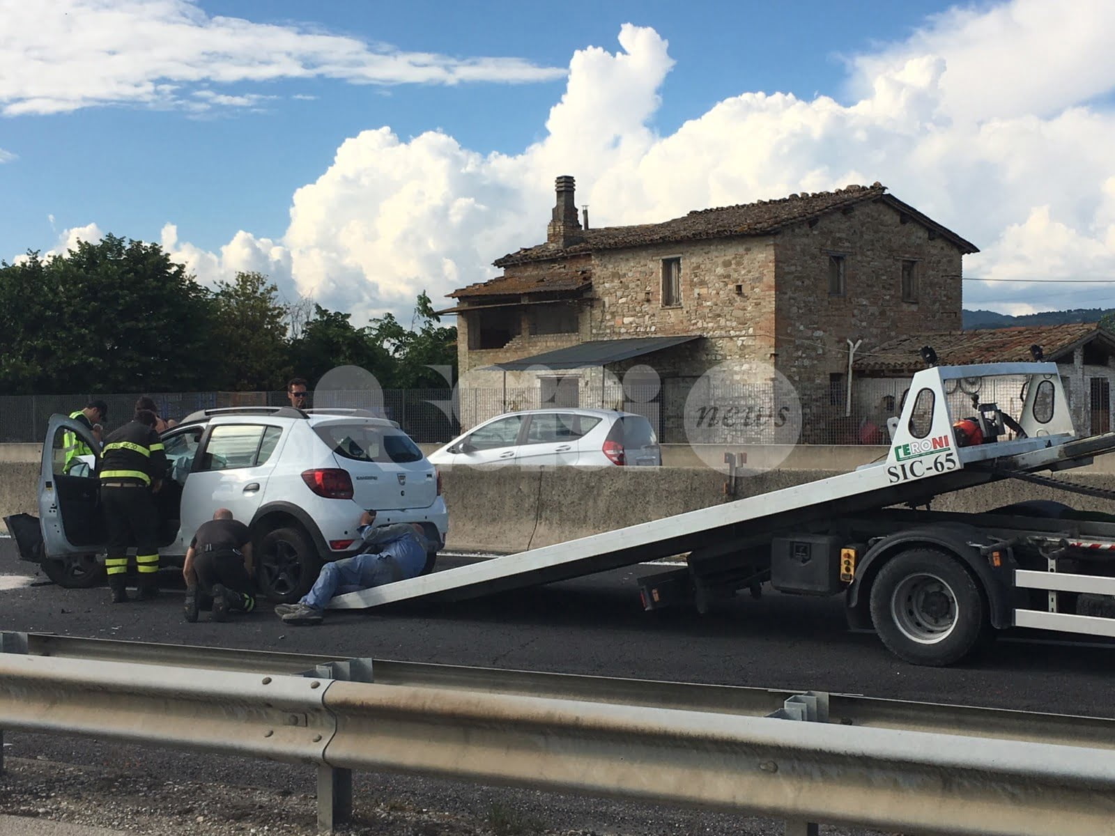Brutto tamponamento sulla SS 75 intorno alle 17 di venerdì 11 maggio 2018 con la squadra dei vigili del fuoco di Assisi che è intervenuta lungo la ss75 direzione Foligno, zona Santa Maria degli Angeli, all’altezza dello svincolo di Cannara. L’incidente ha coinvolto tre autovetture. Sul posto due ambulanze del 118 e una pattuglia della Polizia Stradale.