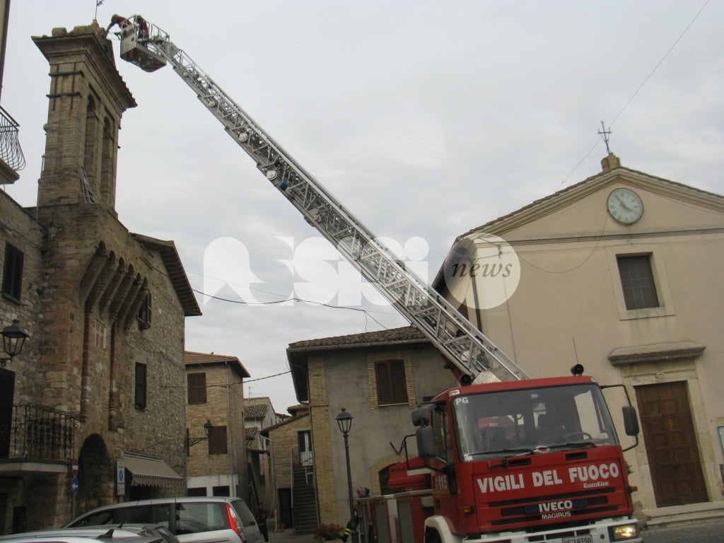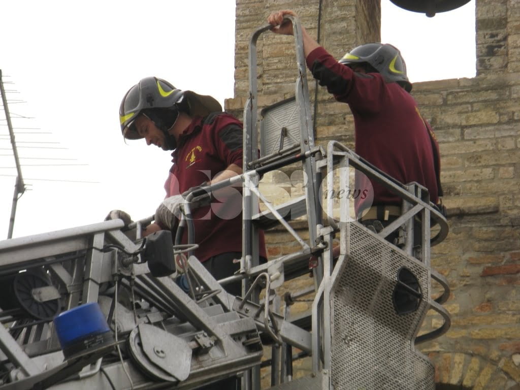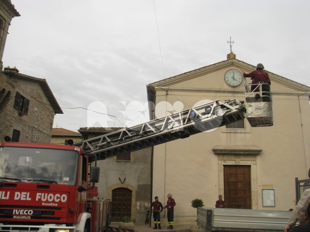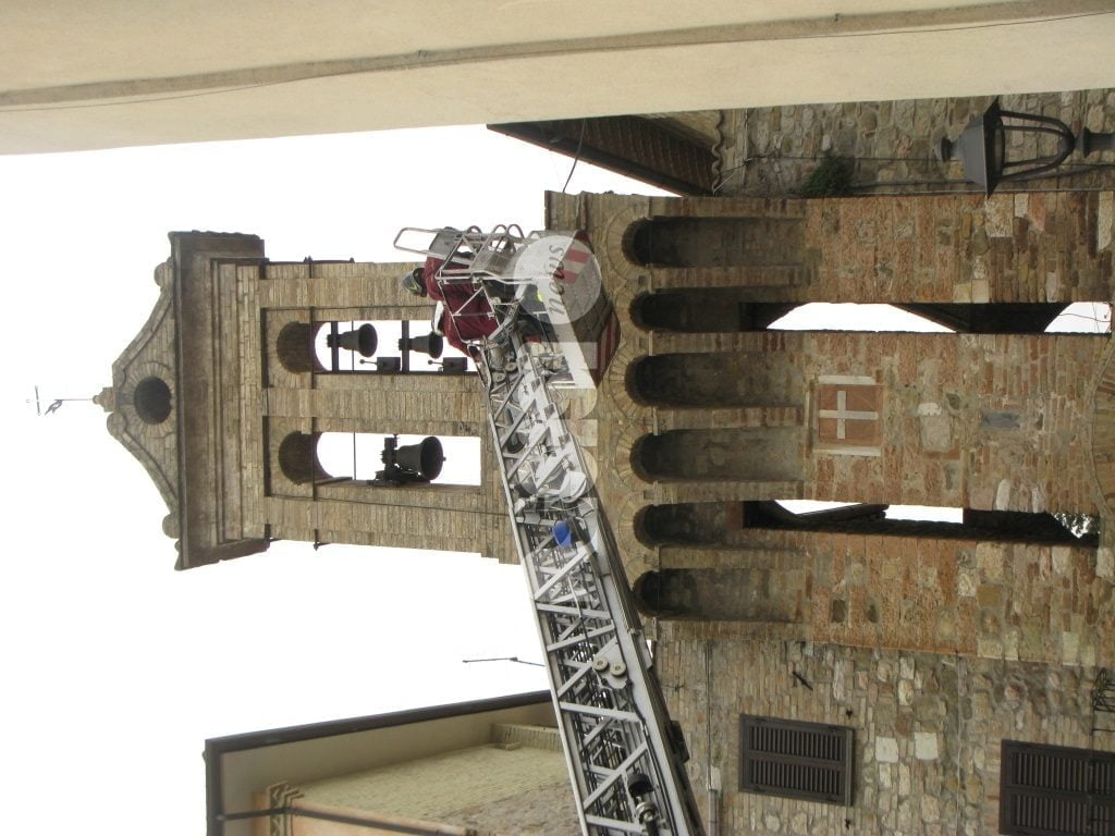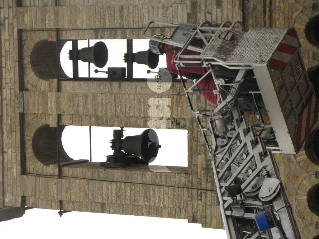 A salvare “l’attrezzo” i vigili del fuoco e i carabinieri di Assisi: i caschi rossi assisani hanno chiesto l’invio della grande scala mobile che è arrivata a Tordandrea di Assisi da Perugia permettendo a due componenti della squadra dei vigili del fuoco del distaccamento di Assisi, di salire ed operare in completa sicurezza, per estirpare la pianta e rimuovere i pezzi di muratura già “allentati” dalle radici di un alberello cresciuto sulla cima del campanile. Il tutto sotto lo sguardo di un gruppo di cittadini che hanno assistito curiosi all’operazione conclusasi con la riconsegna dello “scalandrino” al proprietario.