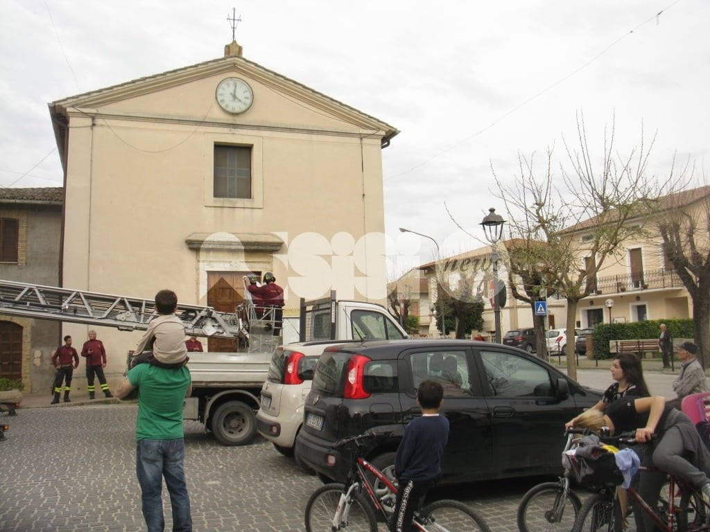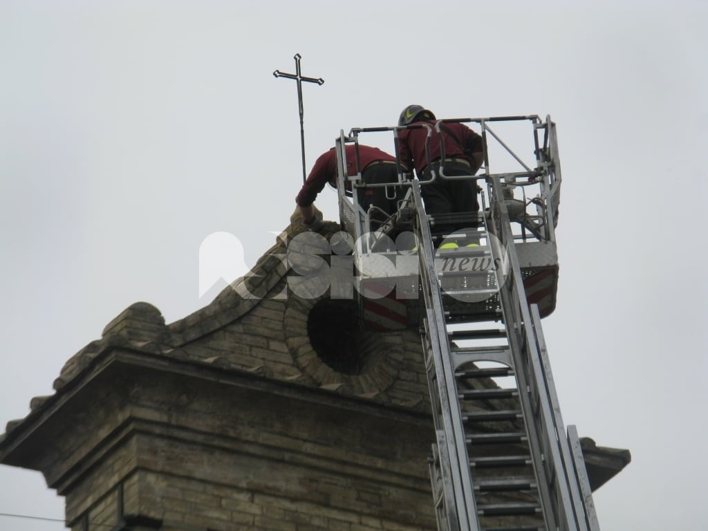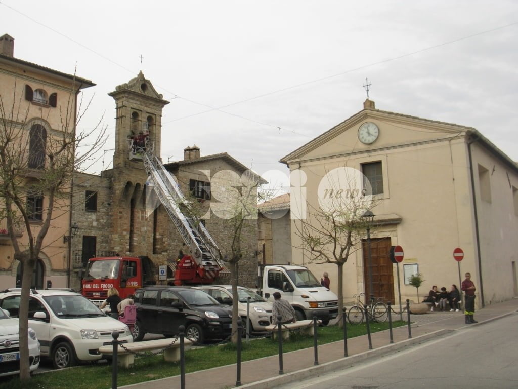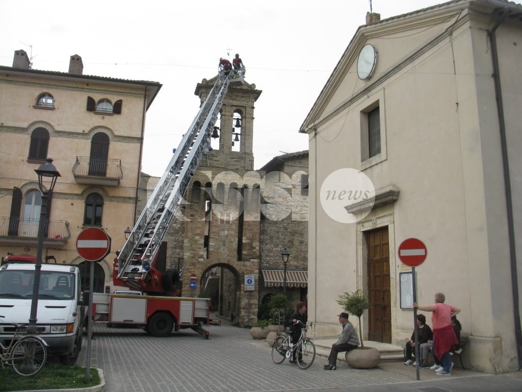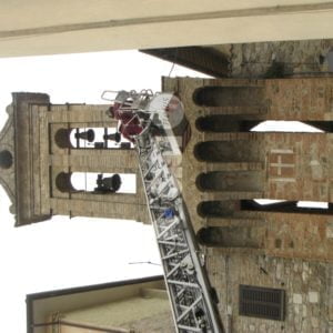 A salvare “l’attrezzo” i vigili del fuoco e i carabinieri di Assisi: i caschi rossi assisani hanno chiesto l’invio della grande scala mobile che è arrivata a Tordandrea di Assisi da Perugia permettendo a due componenti della squadra dei vigili del fuoco del distaccamento di Assisi, di salire ed operare in completa sicurezza, per estirpare la pianta e rimuovere i pezzi di muratura già “allentati” dalle radici di un alberello cresciuto sulla cima del campanile. Il tutto sotto lo sguardo di un gruppo di cittadini che hanno assistito curiosi all’operazione conclusasi con la riconsegna dello “scalandrino” al proprietario.
