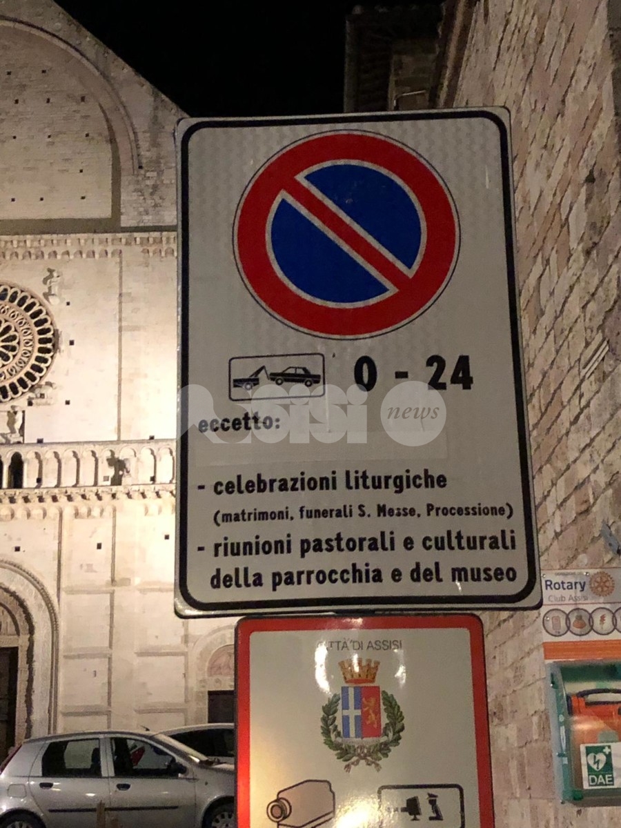 Ma partiamo dai “parcheggi” riservati nei sagrati della tante chiese di Assisi. Il sagrato di San Rufino ha una regolamentazione “speciale”, ci sono permessi in occasione delle assemblee diocesano. Sul sagrato si può parcheggiare anche per le messe, domenica inclusa quando tutto il resto del centro storico è off limits. Quindi, la ‘normativa’ del parcheggio sembrerebbe contrastare con la ztl. Da non dimenticare che a causa degli ingressi “disinvolti” dal varco di Piazza Matteotti, la giunta ha chiuso via Sermei.