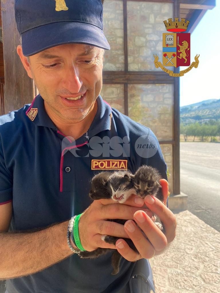 Era da un po’ di tempo che sentiva il miagolio disperato di tre gattini provenire dal tetto del suo agriturismo e non sapendo come salvarli, ha richiesto l’intervento degli agenti della Polizia di Stato del Commissariato di Assisi.