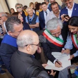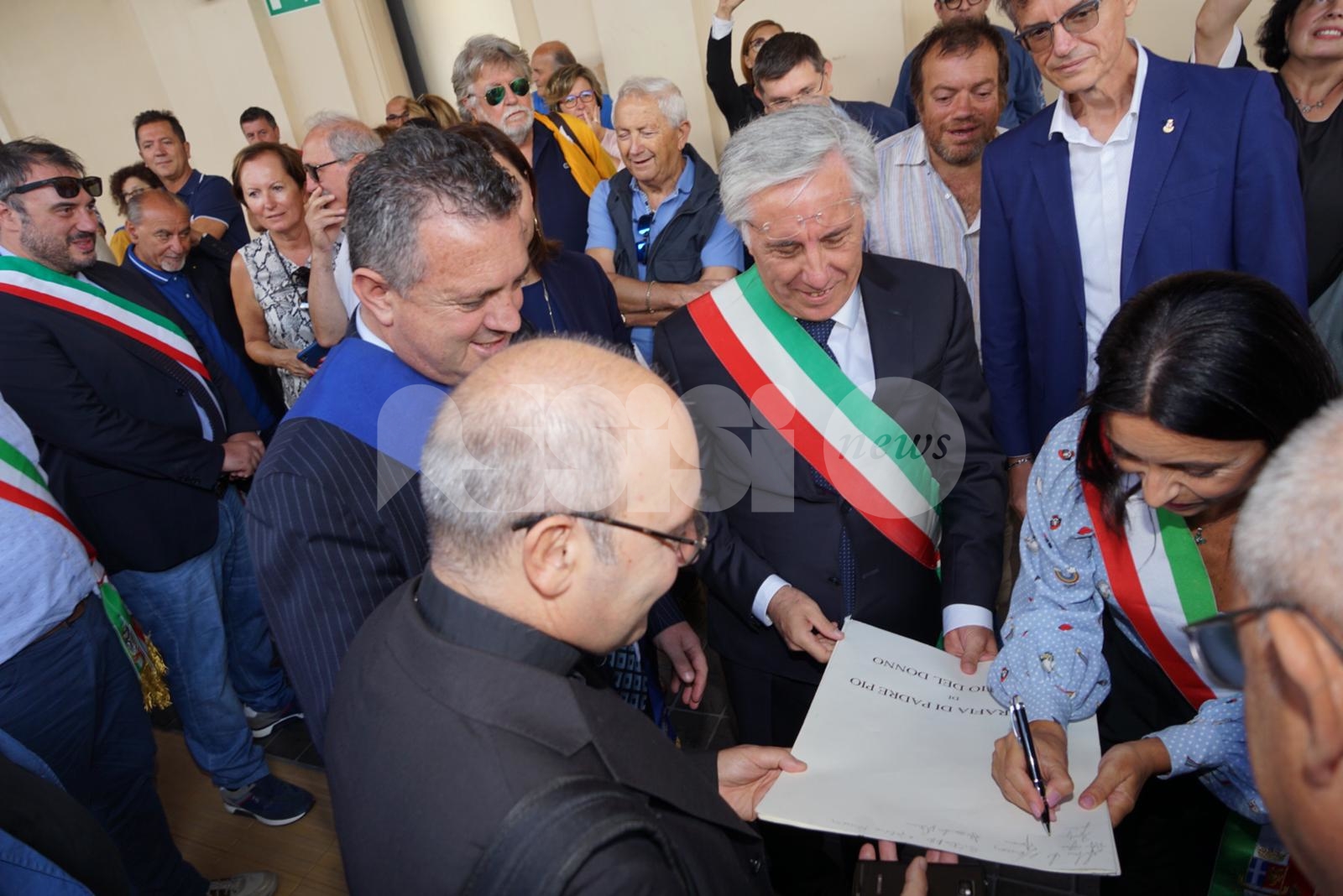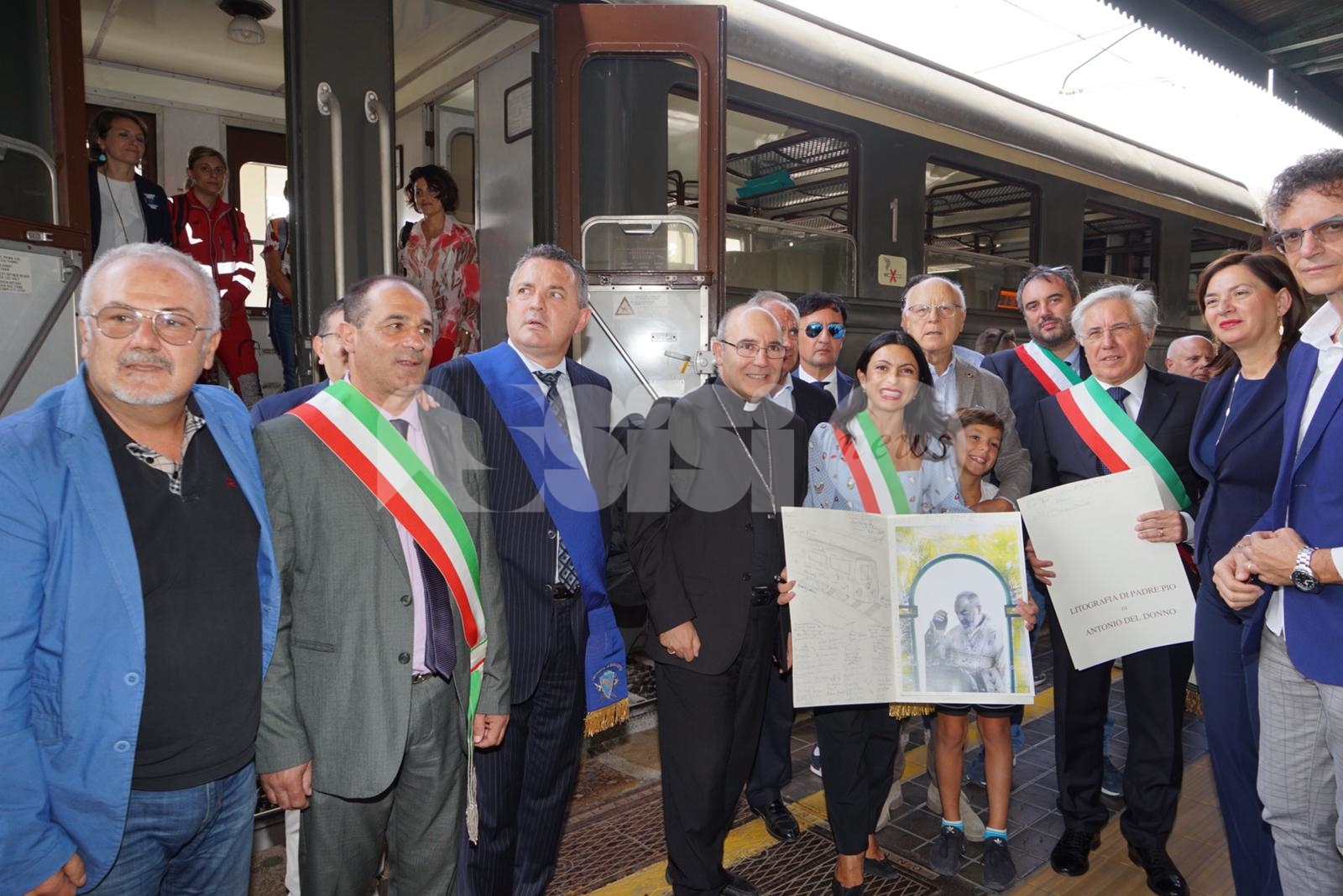 Ad accogliere i pellegrini alla stazione di Assisi il sindaco Stefania Proietti, il sindaco di Pietrelcina Domenico Masone, il presidente della Provincia di Benevento Antonio Di Maria, il presidente della Camera di commercio di Benevento Antonio Campese, l’arcivescovo di Benevento monsignor Felice Accrocca, Francesco Todisco, consigliere delegato della Regione Campania alle aree interne e Costantino Boffa, consigliere del presidente della Regione per la ferrovia Na-Ba ferrovia storica Napoli-Pietrelcina-Boscoretolo.