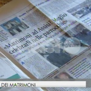 Infine, il TG3 dà la parola al vescovo Sorrentino: “Il matrimonio è un sacramento importante, un percorso che si fa nella propria comunità e che si conclude con la celebrazione. Ci deve essere un motivo per celebrarlo fuori città o fuori diocesi. Tante persone vengono ad Assisi, perché Assisi attrae. Ma qualche volta vengono non preparate o celebrano matrimoni non nello stile della città di San Francesco”.