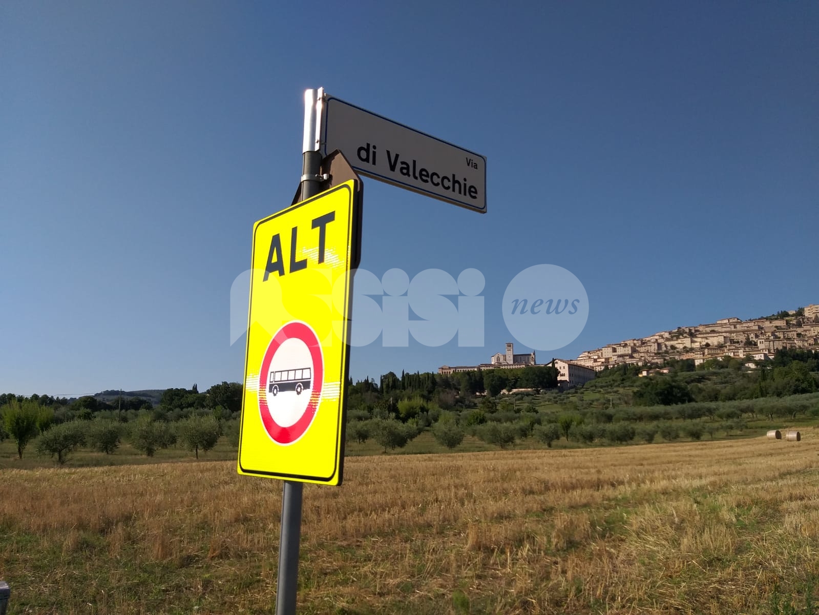 Dopo i tre pullman bloccati in pochi giorni e l’appello dei residenti di via Valecchie inviato per conoscenza anche ad AssisiNews (che la redazione ha rilanciato, ndr), è pronta la risposta del Comune di Assisi. Installati nuovi cartelli – di colore giallo, così da ‘saltare’ meglio all’occhio – ma anche una segnaletica orizzontale per far capire che la via è inaccessibile ai pullman. Servirà?