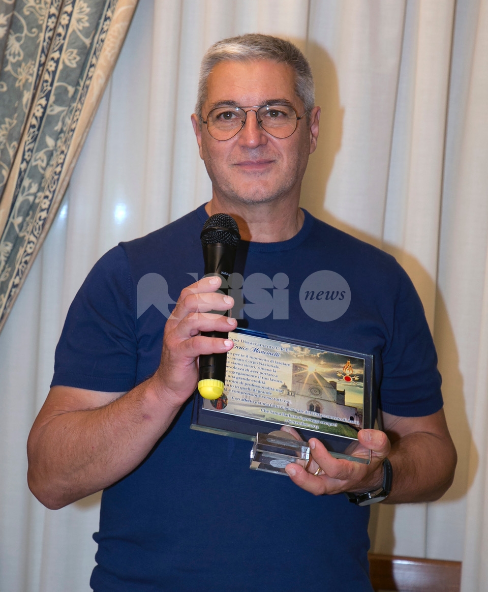 Poi momento conviviale che ha visto la presenza dei pompieri di ieri e di oggi che hanno voluto così essergli vicini in questo momento. Presenti, fra gli altri, il comandante provinciale dei vigili del fuoco di Perugia, Antonio Albanese, Fabiola Filippa, funzionario responsabile per il distaccamento di Assisi, il sindaco della città serafica Stefania Proietti, fra Marco Moroni, Custode del Sacro Convento di san Francesco, i vertici locali delle forze dell’ordine, i familiari, oltre a Valter Cardia che dal primo settembre riveste l’incarico di capo distaccamento della città di san Francesco.