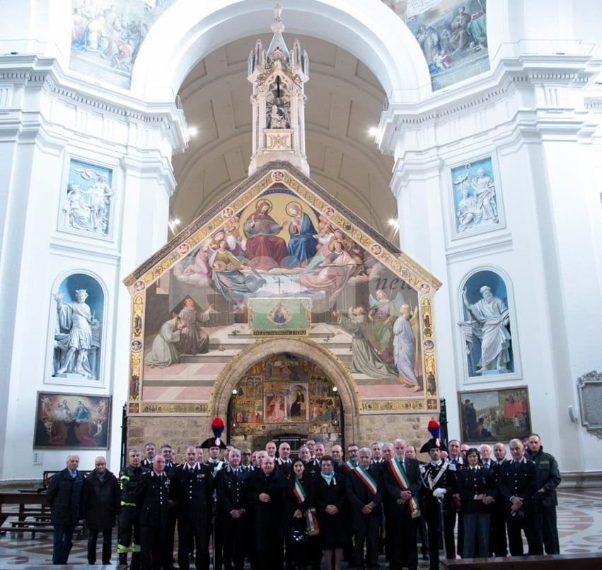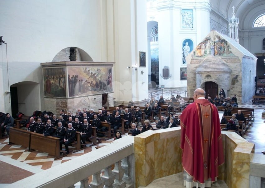 La Santa Messa per le celebrazioni della Virgo Fidelis 2018 è stata officiata dal Vescovo di Assisi, monsignor Domenico Sorrentino. Presenti il comandante della compagnia Carabinieri di Assisi, maggiore Marco Vetrulli, insieme ai militari delle varie stazioni della Compagnia di Assisi, i carabinieri in congedo e rappresentanti di altre forze dell’ordine (guardia di finanza, della polizia di Stato e vigili urbani, oltre ai vigili del fuoco). Per i Comuni erano presenti, tra gli altri, il sindaco di Assisi Stefania Proietti e quello di Bastia Stefano Ansideri. Non mancavano i genitori di Renzo Rosati, il Vicebrigadiere morto in servizio e insignito di Medaglia d’oro al valor civile militare e al quale è dedicata la caserma dei Carabinieri di Assisi