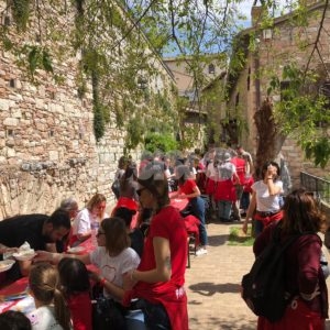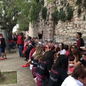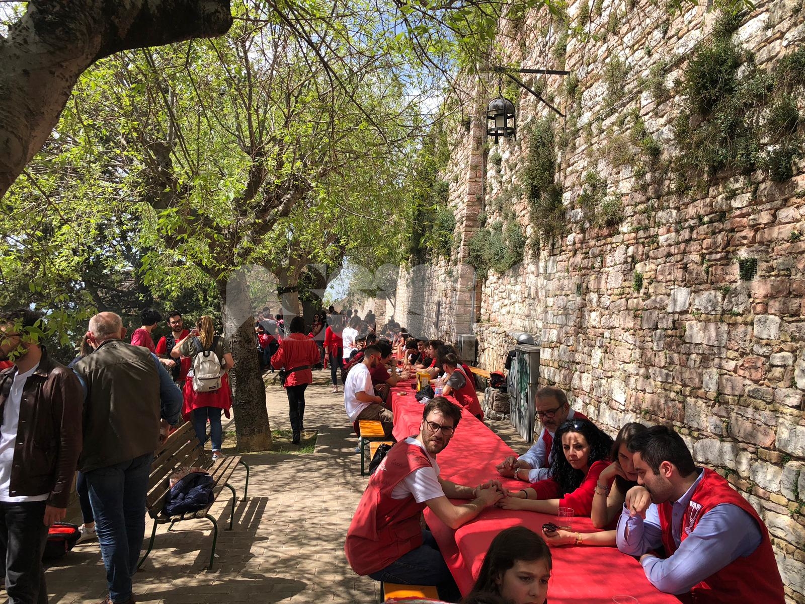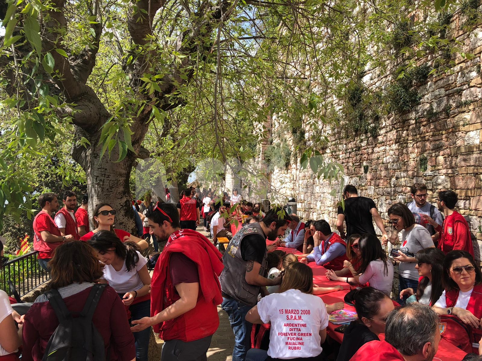 I giurati – resi noti dal presidente dell’Ente Lanfranco Pecetta, che ha parlato di una “giuria di grandissima qualità: anche se avevamo pensato di risparmiare e di farli assegnare all’Ente, ha scherzato” – decreteranno chi, tra Magnifica Parte de Sotto e Nobilissima Parte de Sopra, vincerà il Calendimaggio 2019 di Assisi. Prima della presentazione nei vicoli delle due Parti tanti i Partaioli presenti ai rispettivi pranzi tradizionali del 25 aprile (fotogallery in fondo all’articolo).