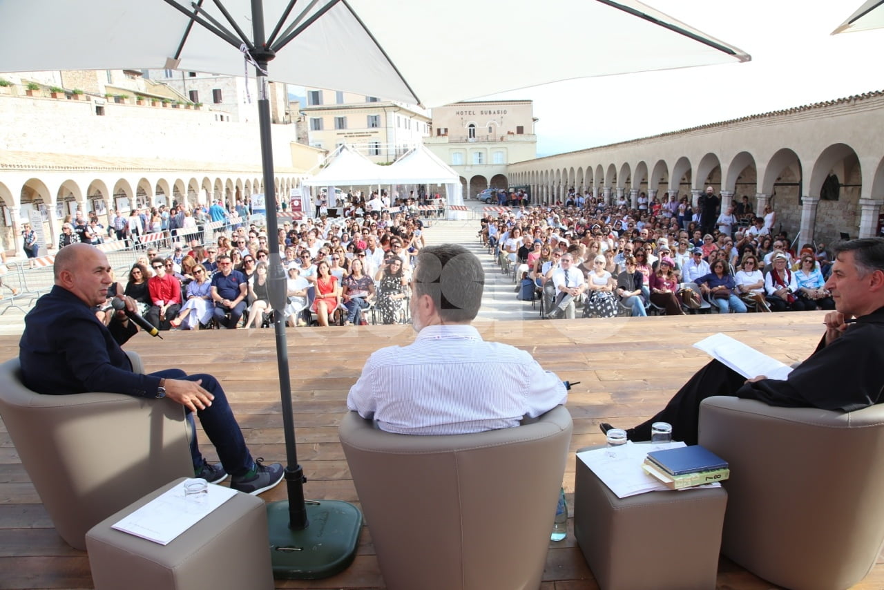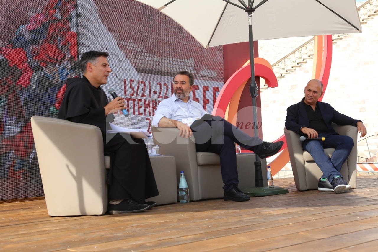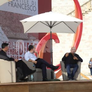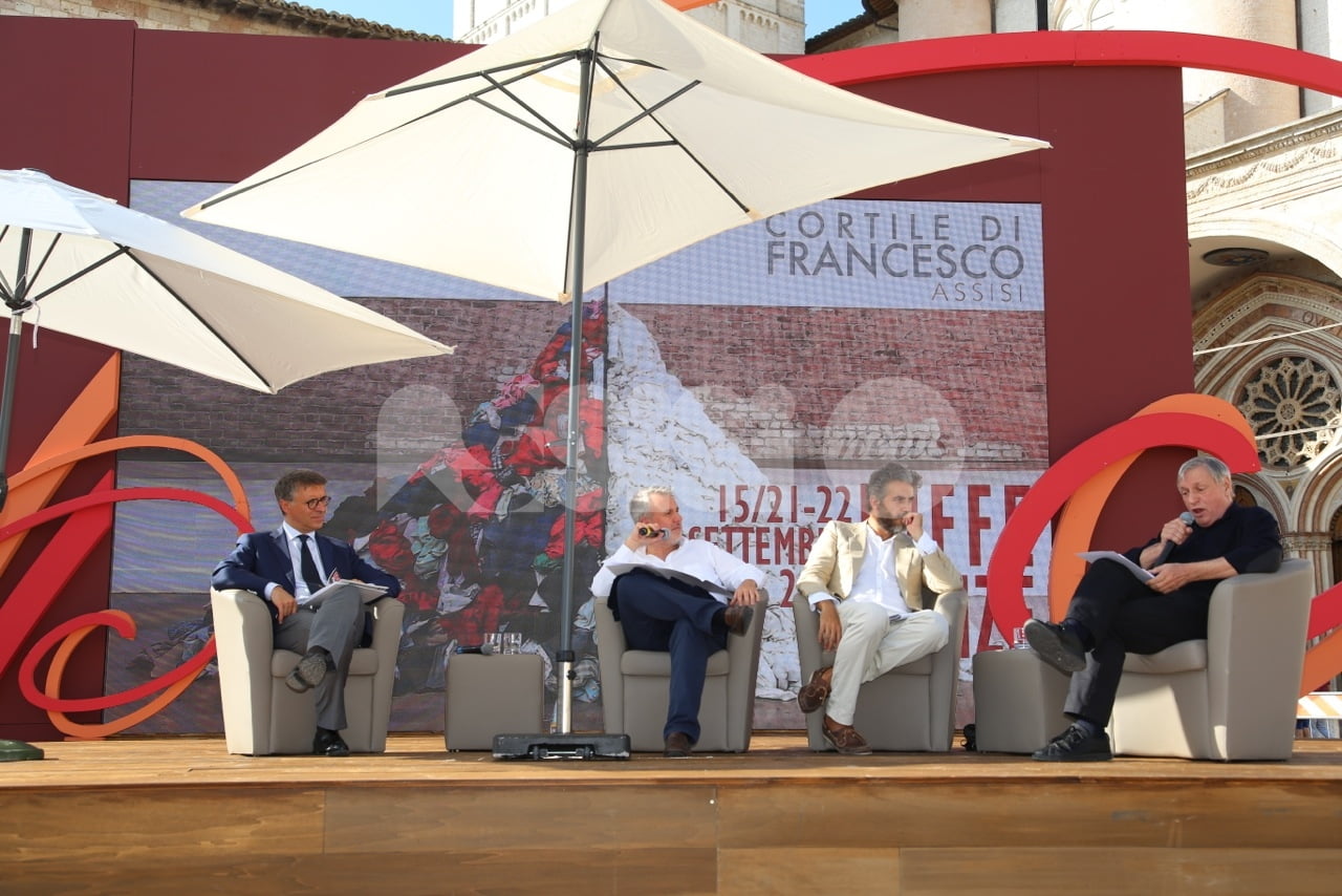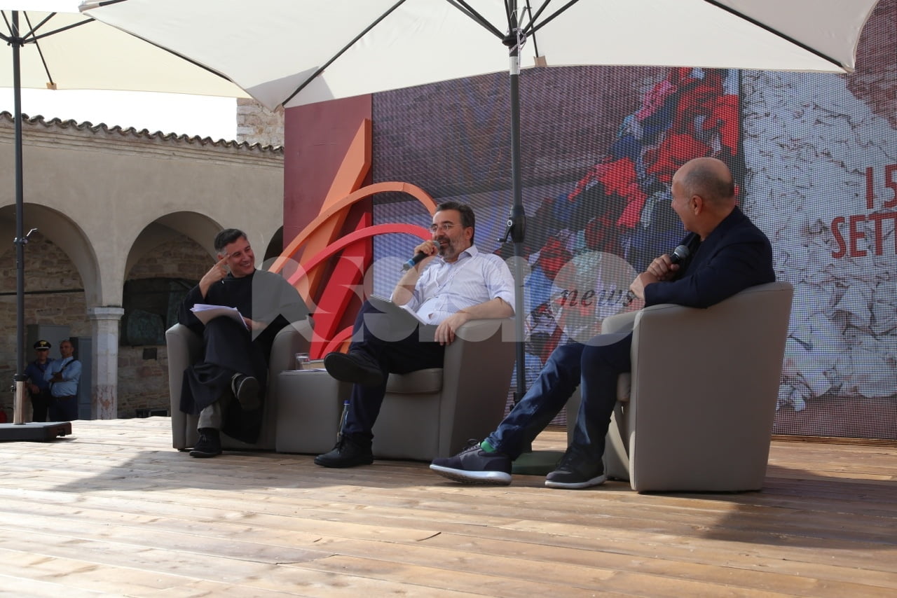 Al Cortile di Francesco 2018 ad Assisi, trentadue incontri, 40 relatori provenienti dalle esperienze umane e professionali più diverse del mondo della letteratura, delle istituzioni, dell’economia, della religione, dell’arte e del giornalismo che si sono confrontati sui temi della rassegna. L’ultimo dei tre giorni della rassegna è cominciato questa mattina con la Presidente della Regione Catiuscia Marini, ed è continuato con l’economista Carlo Cottarelli e il regista Ferzan Ozpetek. Poi, per citare solo alcuni incontri, il fotografo Toscani, i direttori dei più importanti musei italiani, lo scrittore Tahar Ben Jelloun e, come detto, in chiusura in Basilica Superiore, gran finale con l’attore Francesco Pannofino che ha letto brani della Bibbia, del Corano e del filosofo greco Parmenide.