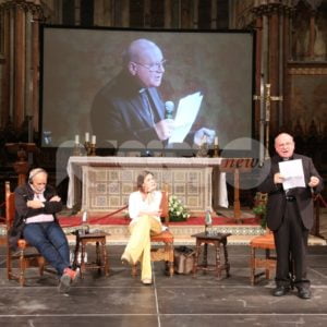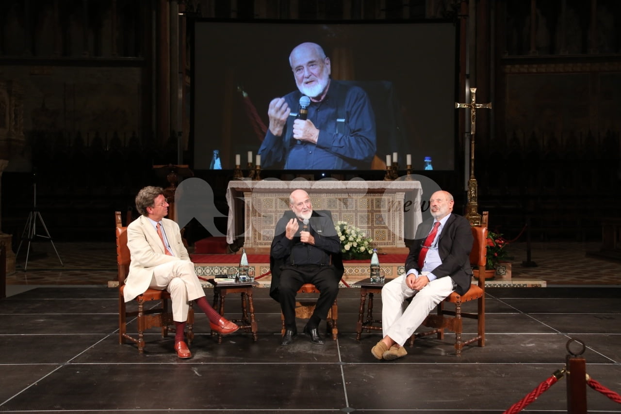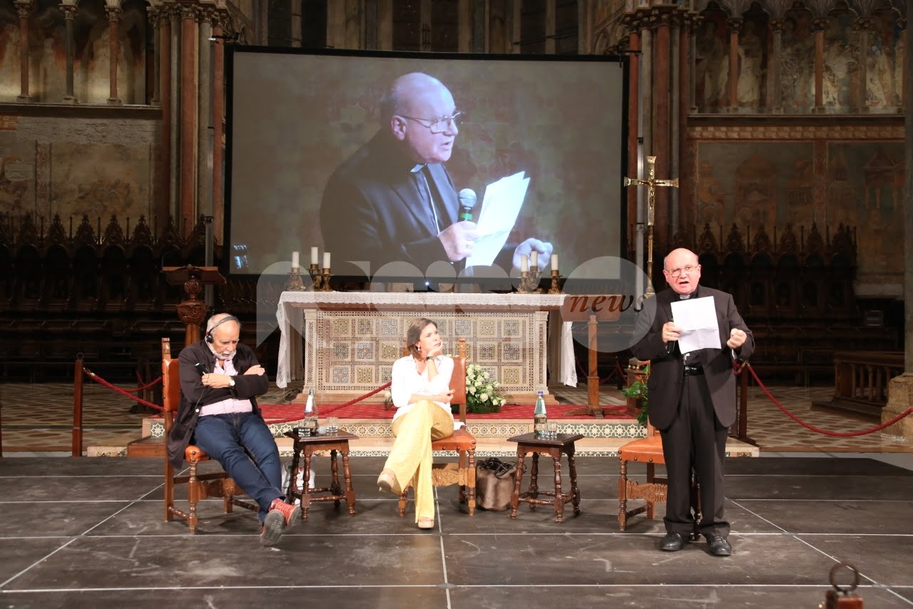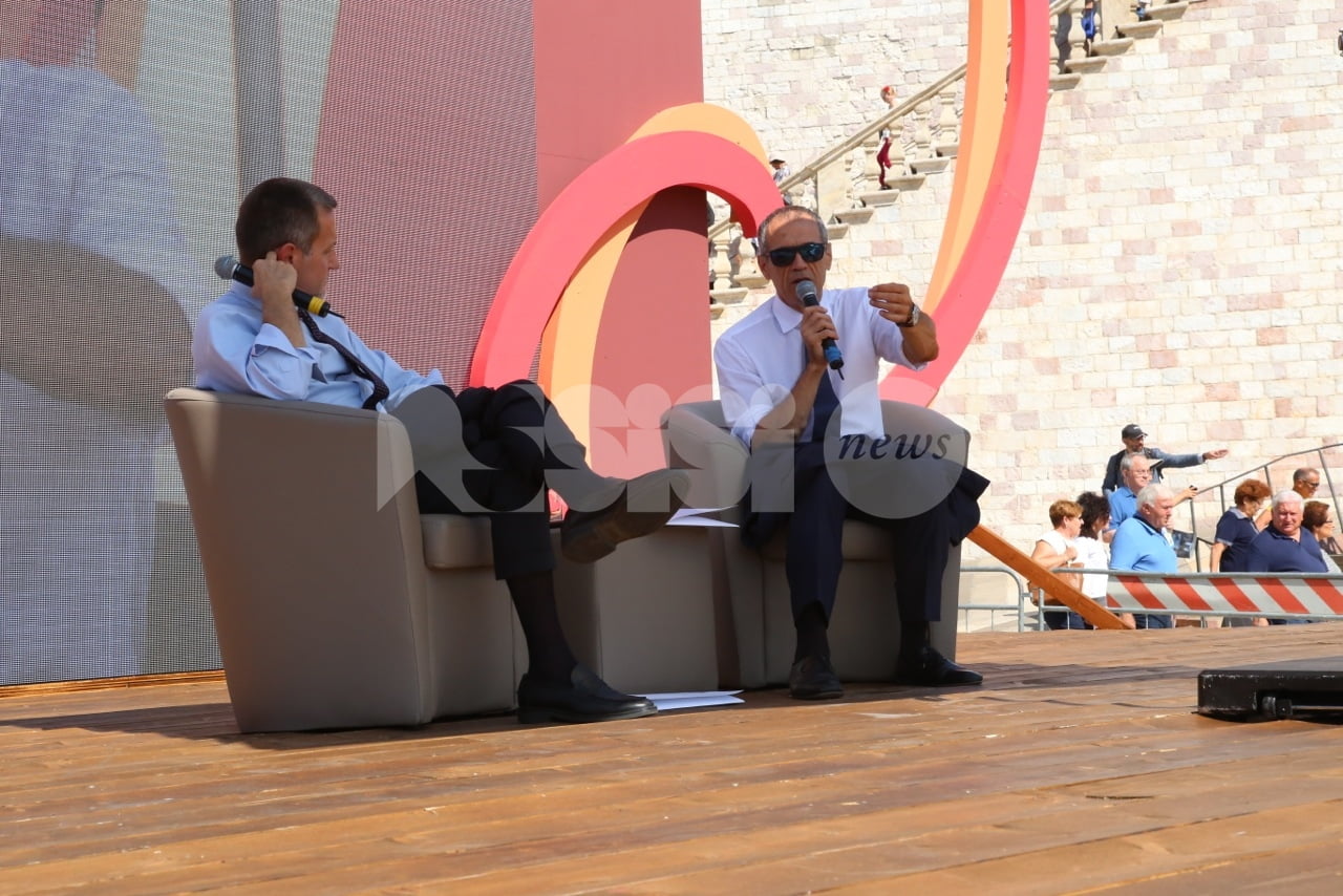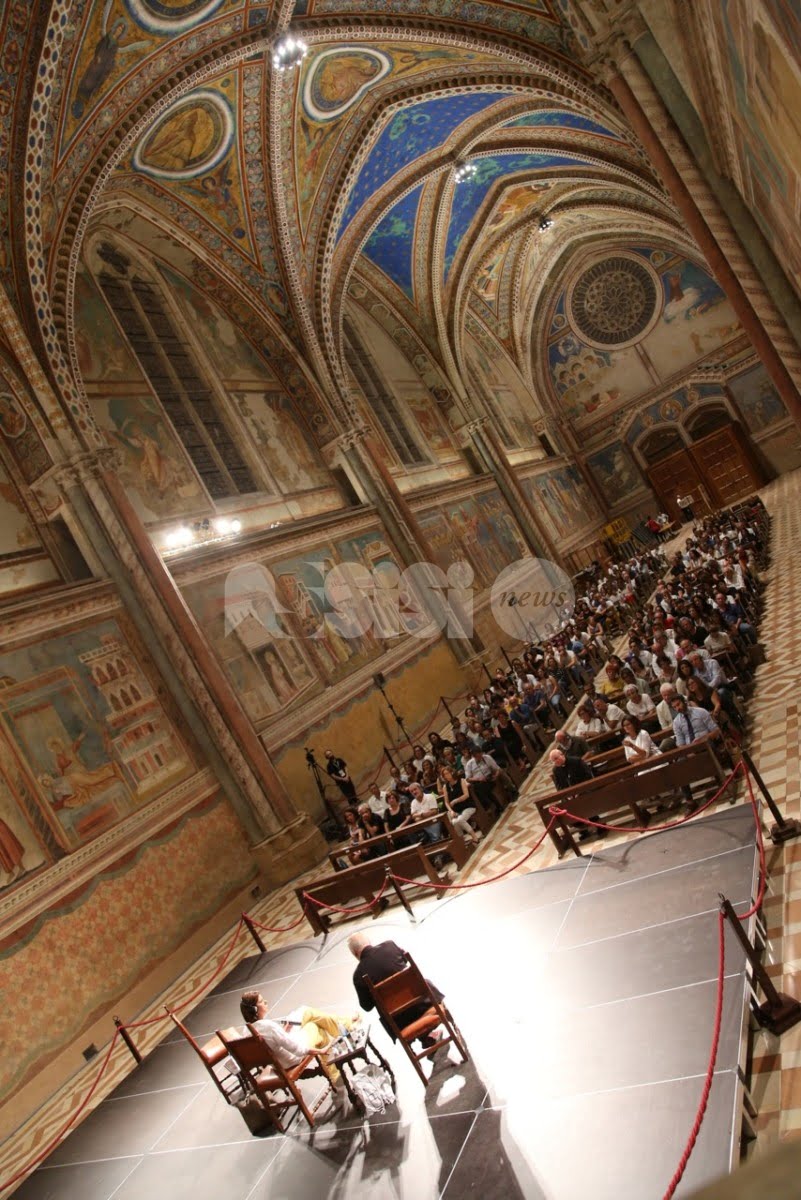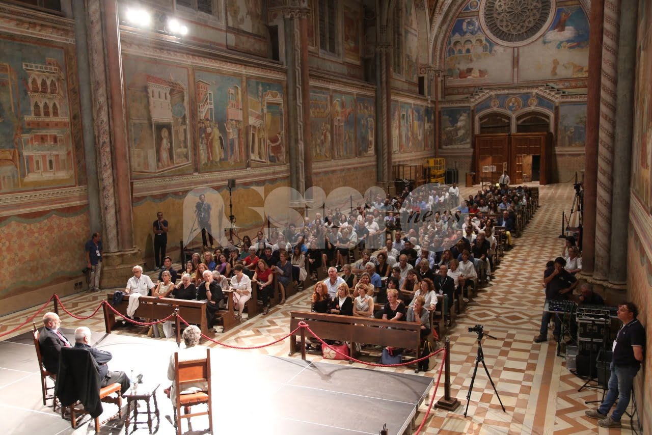 Al Cortile di Francesco 2018 ad Assisi, trentadue incontri, 40 relatori provenienti dalle esperienze umane e professionali più diverse del mondo della letteratura, delle istituzioni, dell’economia, della religione, dell’arte e del giornalismo che si sono confrontati sui temi della rassegna. L’ultimo dei tre giorni della rassegna è cominciato questa mattina con la Presidente della Regione Catiuscia Marini, ed è continuato con l’economista Carlo Cottarelli e il regista Ferzan Ozpetek. Poi, per citare solo alcuni incontri, il fotografo Toscani, i direttori dei più importanti musei italiani, lo scrittore Tahar Ben Jelloun e, come detto, in chiusura in Basilica Superiore, gran finale con l’attore Francesco Pannofino che ha letto brani della Bibbia, del Corano e del filosofo greco Parmenide.