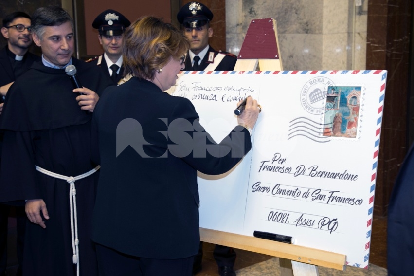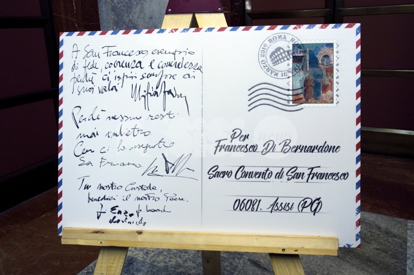 “Guardiamo avanti, guardiamo le persone negli occhi – continua padre Gambetti – per camminare lungo percorsi di riconciliazione. Una via che chiede accoglienza, conoscenza dell’altro e libertà interiore; una via di ricerca della verità attraverso il confronto e il dialogo. Sono queste le strade da percorrere anche per la politica, ad ogni livello. In quest’ottica, – conclude il Custode del Sacro Convento – speriamo che questo francobollo celebrativo possa servire per stimolare a scrivere ed inviare nuovi messaggi di pace, di fratellanza, di benevolenza per l’altro. Siamo convinti, infatti, che a distanza di otto secoli la profezia di Francesco è più che mai valida per il futuro”.