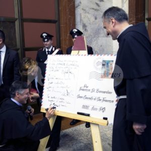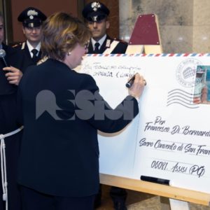 “Con l’annullo filatelico di questo francobollo celebrativo, vorremo dire innanzitutto che non dobbiamo più girare lo sguardo dall’altra parte. Davanti alle differenze è facile reagire urlando, fuggendo o aggredendo. In tal senso, la storia dell’uomo è ricca di testimonianze – ha dichiarato il Custode del Sacro Convento di Assisi, padre Mauro Gambetti. – È necessario levare gli occhi e guardare l’altro in volto: è nostro fratello, qualsiasi colore abbia la sua pelle, qualsiasi sia il suo credo religioso”.
