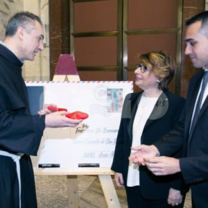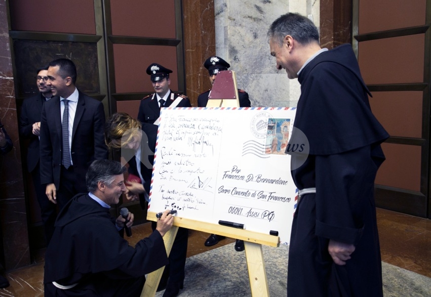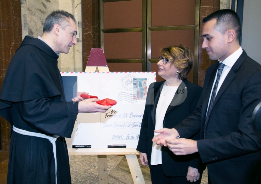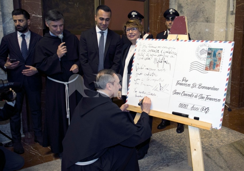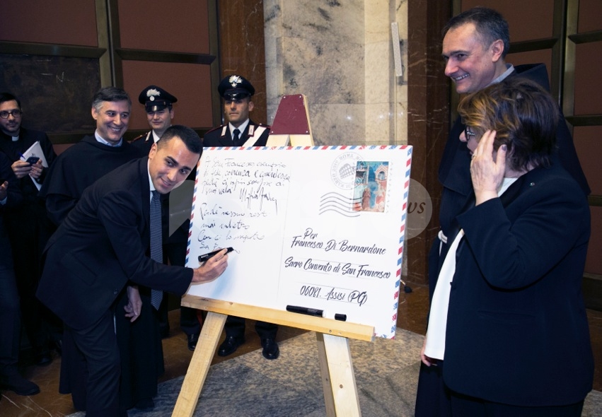 Nel corso della presentazione del francobollo celebrativo, il vicepremier e ministro Luigi Di Maio ha citato il “messaggio dirompente” di San Francesco, “l’attenzione alla povertà e a chi è rimasto indietro. Mai come in questo momento la sua forza intrinseca deve essere il faro del nostro agire politico”, per perseguire “la lotta alla povertà. Fra 5 giorni partono le domande per l’avvio del reddito di cittadinanza. L’intento di questa misura – ha spiegato Di Maio – è proprio quello di consentire a uomini e donne in condizione di disagio di riscattarsi. Di essere integrate nella società, di poter aspirare a condizioni di vita migliori. La lotta alla povertà, creare condizioni di vita più dignitose in una parte consistente della popolazione che vive in condizioni di disagio è un obiettivo che intendo perseguire da quando mi sono insediato al ministero del Lavoro e delle Politiche sociali”, ha concluso.