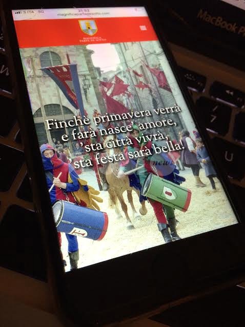 Il layout del nuovo sito web, realizzato dallo Studio Berti Design (che ha sede in Assisi ed opera nei settori di grafica, comunicazione, web, social media e ufficio stampa), è adattabile automaticamente alla periferica sulla quale l’utente decide di navigare, pc, tablet, smartphone. Tutti i contenuti sono condivisibili facilmente attraverso Facebook. Nel corso dei prossimi mesi – continua la nota a firma del Priore Maggiore Massimiliano Della Vedova – verranno lanciate nuove pagine e inseriti nuovi contenuti, in particolare la sezione Merchandising. All’interno del sito ufficiale della Magnifica Parte de Sotto, anche un’area apposita dedicata proprio ai social media quali Facebook e Istagram, dove i Partaioli potranno condividere immagini e contenuti inerenti i momenti trascorsi per e con la Magnifica Parte de Sotto. A tutti, buona navigazione su www.magnificapartedesotto.com!”.