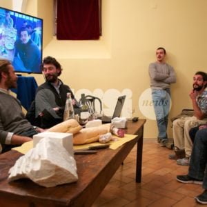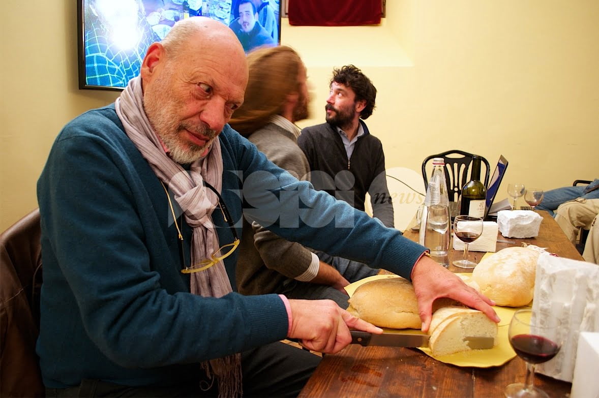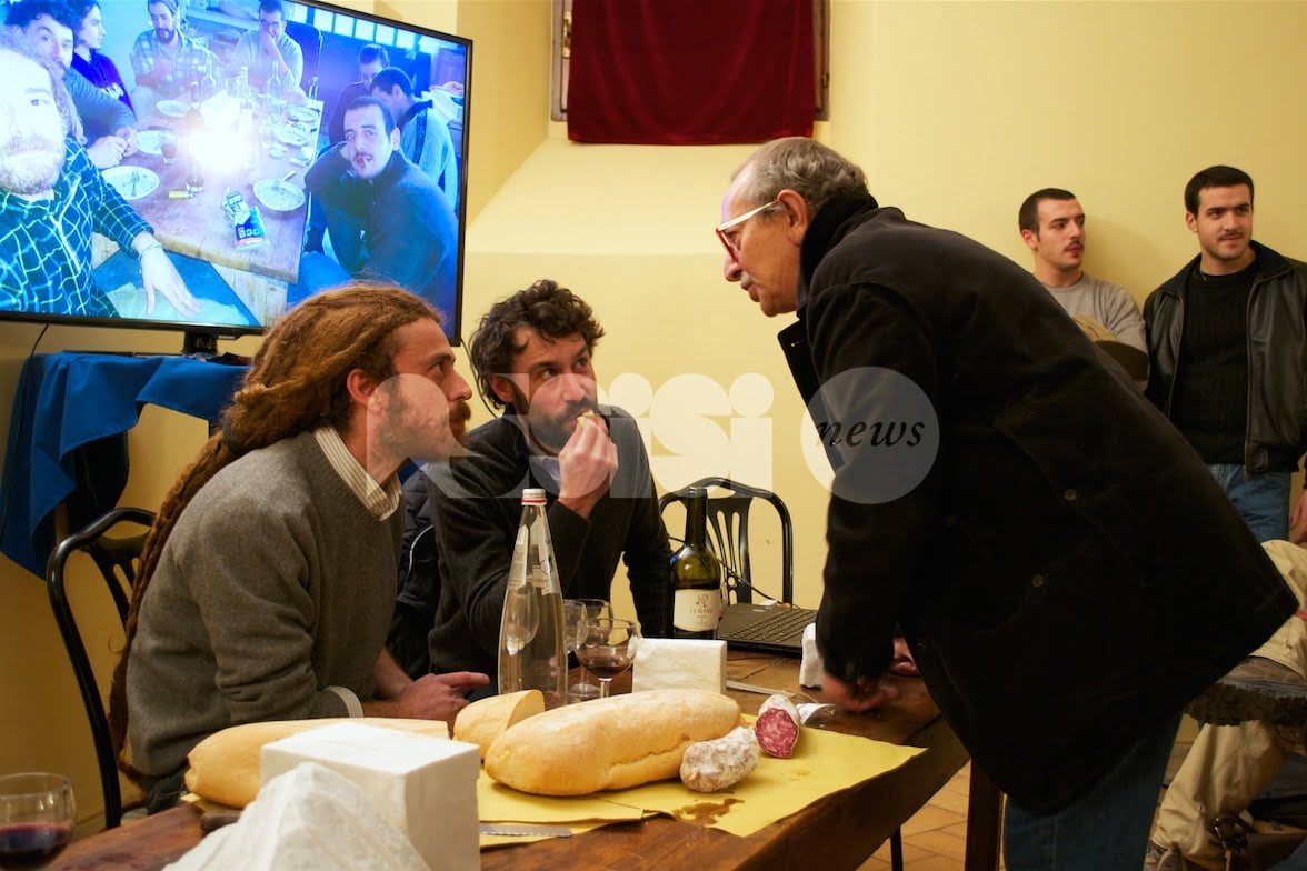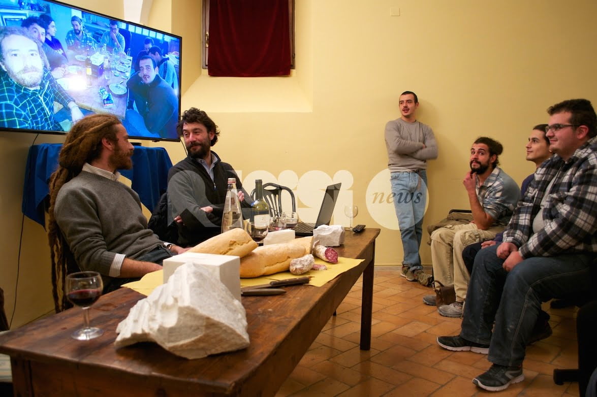 “Fette di pane, un po’ di salame e un bicchiere di rosso vino. Caravaggio è andato in scena, o almeno c’ha provato. Sabato 11 novembre ad Assisi sala gremitissima e grande successo al Circolo Fortini per l’incontro con gli scultori Matteo Peducci e Mattia Savini. Tra eclettismo e futurismo, finissimo talento manuale e ispirazione geniale; dalla Thailandia ad Amsterdam per omaggiare sovrani e scienziati. Dentro la materia: l’arte sprigiona energia e diventa scienza dei materiali, marmo, legno, polimeri, metalli. Ritorno al Verrocchio: il laboratorio degli Affiliati si è fatto scuola-bottega, recuperando una per una tutte le singole specializzazioni della filiera artistica, dal cavatore del marmo al levigatore d’opera conclusa.