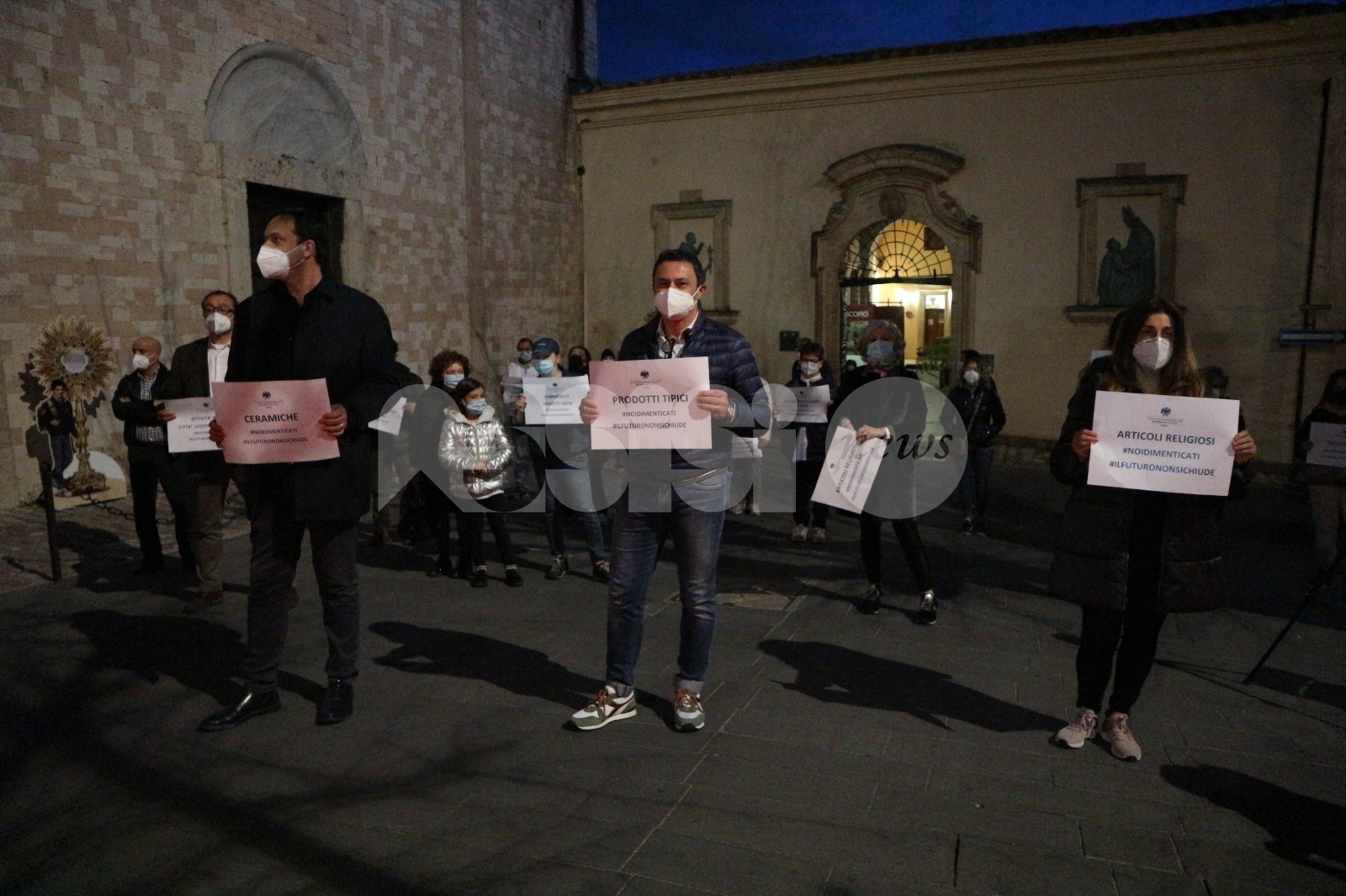Per la prima volta, gli imprenditori di 5 città santuario italiane, piccole ma di straordinaria importanza religiosa e turistica, sono scese in piazza, in contemporanea, per rappresentare il loro dramma e la loro enorme preoccupazione per il futuro. Non a caso è stata scelta la data del Venerdì Santo, oggi 2 aprile 2021, per questa nuova manifestazione di #noidimenticati. Alle 20 centinaia di imprenditori di Assisi, Cascia, Loreto, Pompei e San Giovanni Rotondo si sono uniti in un una protesta che non ha precedenti: pacifica e nel rispetto delle regole di sicurezza, ma estremamente determinata. La protesta di chi non si arrende a morire nell’indifferenza generale. (Continua dopo il video della protesta del 19 marzo in catene)