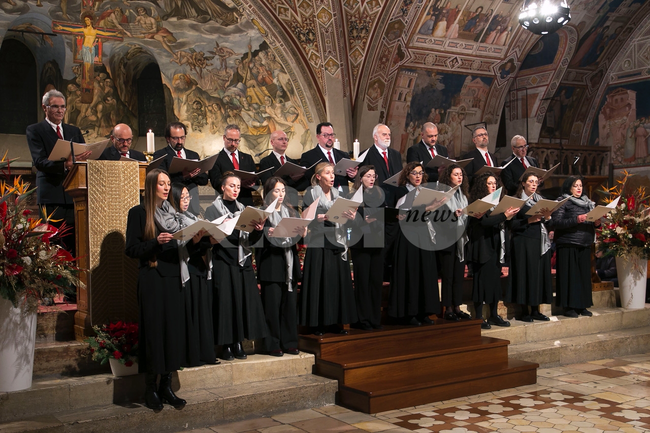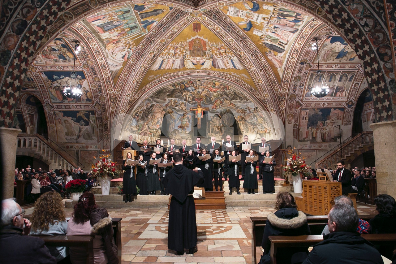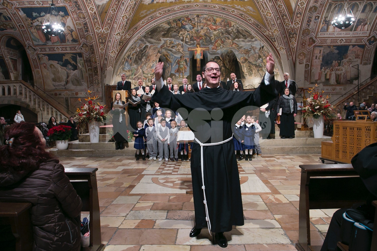 Il concerto “Alla luce di una stella 2024” di sabato 28 dicembre 2024 alle 18.30 nella chiesa inferiore della Basilica è stata una meditazione musicale sul Natale attraverso i canti della tradizione francescana eseguiti dalla Cappella Musicale della Basilica Papale di San Francesco, diretta da padre Peter Hrdy, OFMConv. Protagonista in questa occasione anche il Coro Allegre Note, diretto da Monica Pietrella; Piergiovanni Domenighini all’organo. Un concerto che è da ormai tanti anni appuntamento fisso per il Natale ad Assisi, e che ogni anno si svolge durante il periodo delle festività natalizie. Diversi i brani protagonisti, per un evento che ha colpito ed emozionato i presenti e che ha confermato la qualità dell’ensemble francescana. (Assisi News ha anche un sito dedicato agli eventi, www.assisieventi.it)