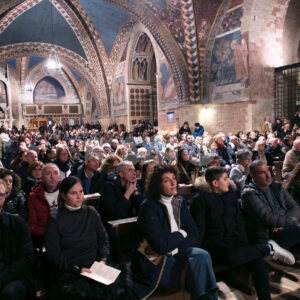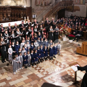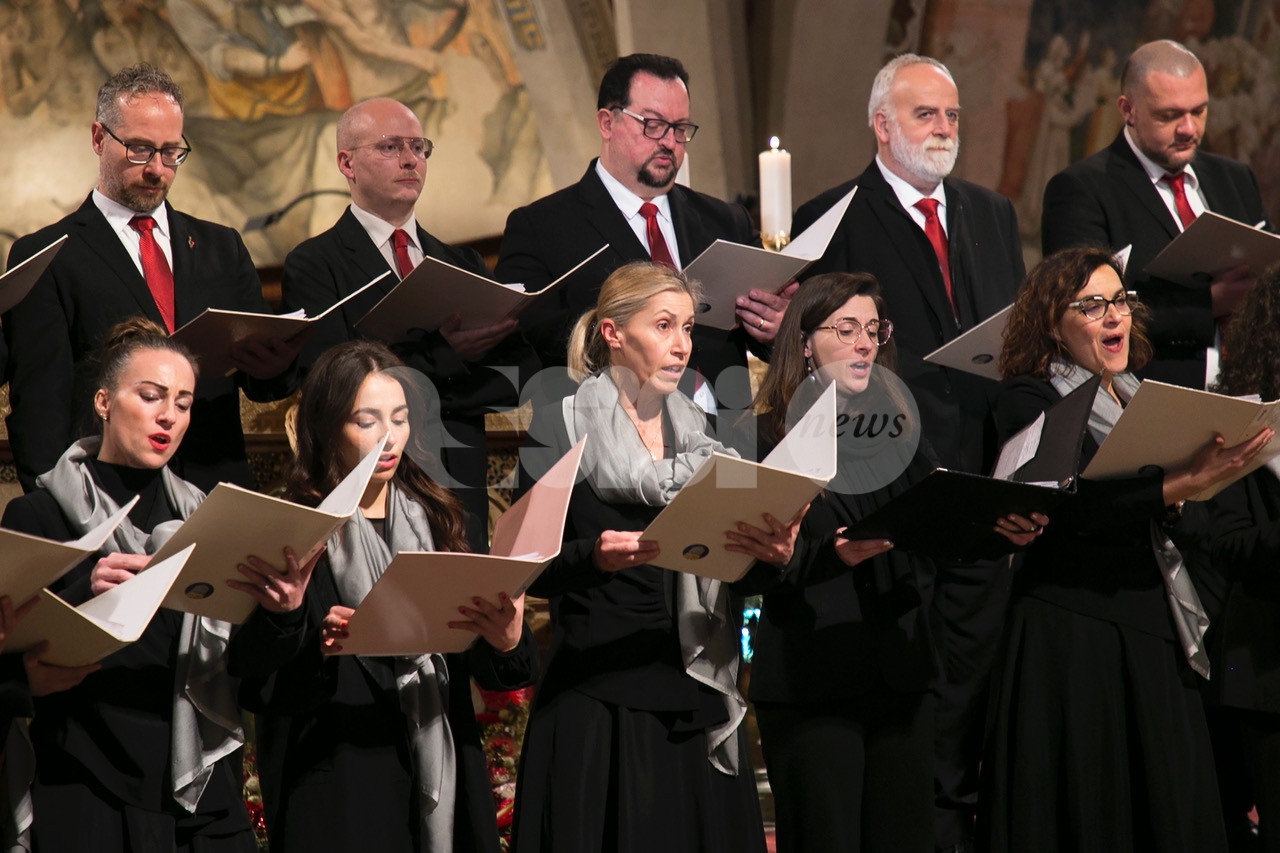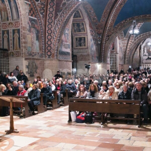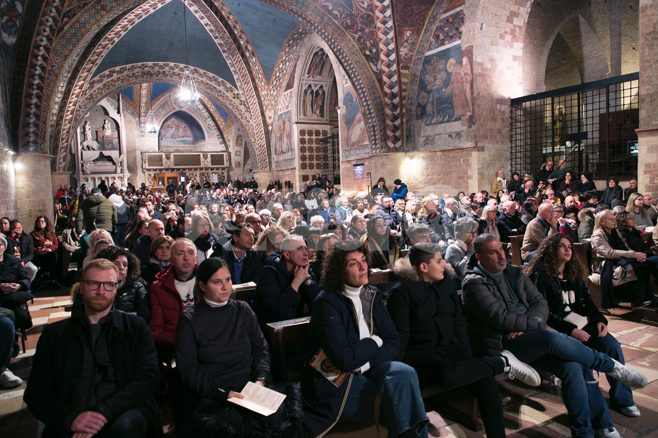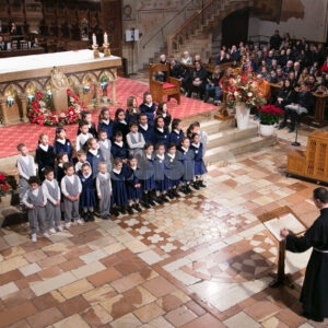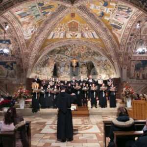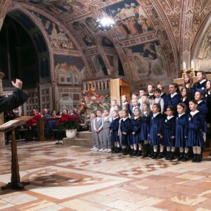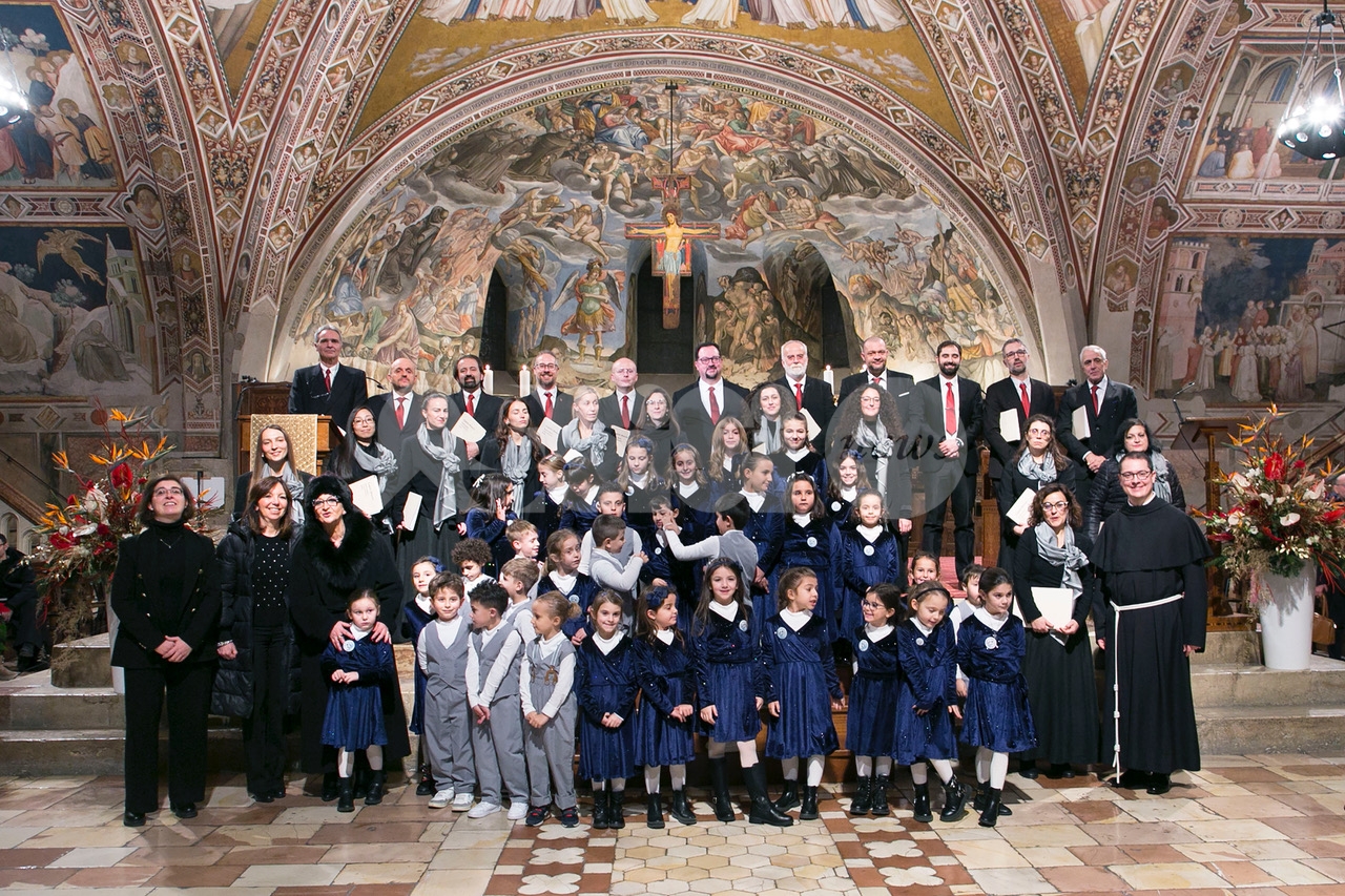 Il concerto “Alla luce di una stella 2024” di sabato 28 dicembre 2024 alle 18.30 nella chiesa inferiore della Basilica è stata una meditazione musicale sul Natale attraverso i canti della tradizione francescana eseguiti dalla Cappella Musicale della Basilica Papale di San Francesco, diretta da padre Peter Hrdy, OFMConv. Protagonista in questa occasione anche il Coro Allegre Note, diretto da Monica Pietrella; Piergiovanni Domenighini all’organo. Un concerto che è da ormai tanti anni appuntamento fisso per il Natale ad Assisi, e che ogni anno si svolge durante il periodo delle festività natalizie. Diversi i brani protagonisti, per un evento che ha colpito ed emozionato i presenti e che ha confermato la qualità dell’ensemble francescana. (Assisi News ha anche un sito dedicato agli eventi, www.assisieventi.it)