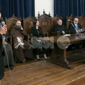 Il sindaco di Assisi Stefania Proietti ha portato il suo caloroso saluto come rappresentante del Comune, sottolineando come Assisi Pax Mundi sia “più di un appuntamento culturale: è- ha detto – un gesto profetico in quanto momento di sinergia delle famiglie Francescane”. Vero protagonista del pomeriggio il maestro Alberto Batisti con la sua prolusione sulla “musica francescana nella storia della musica”: parole e ascolti musicali che hanno davvero colto il significato profondo, spirituale storico e culturale di questa manifestazione. Le parole di Batisti hanno ricordato che “ il Canto mette le ali della musica alla Parola” .