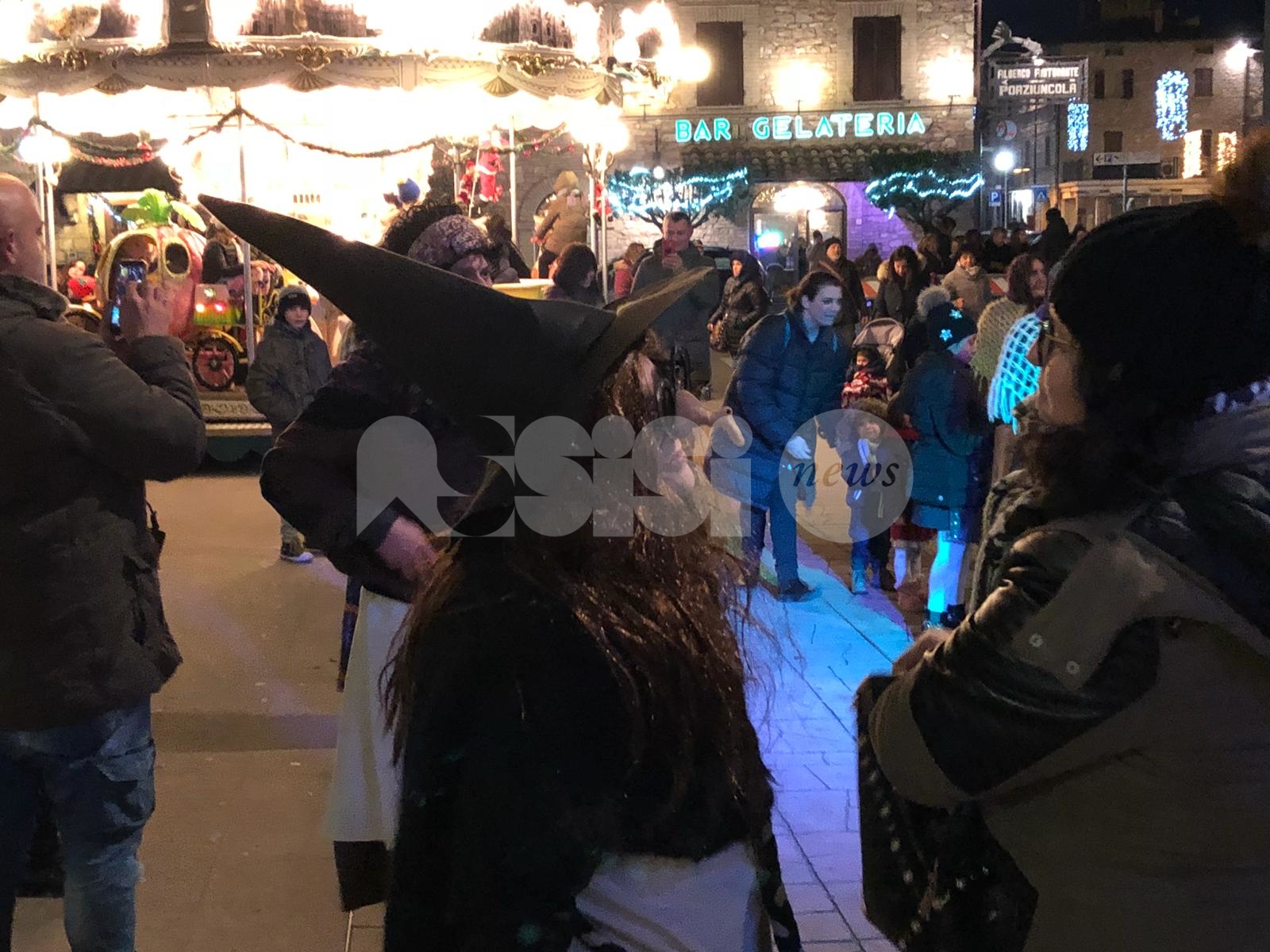 La Befana 2019 ad Assisi è arrivata domenica 6 gennaio 2019, scendendo da monti, campanili e torri. Con il parapendio si è lanciata dal Monte Subasio, ad Assisi centro è scesa dalla Torre civica di Piazza del Comune. Ovunque, la simpatica veccchietta ha portato dolcetti e caramelle. Tanti i bambini ai vari appuntamenti, accompagnati, in una bella giornata iniziata con un sole splendente, dalle proprie famiglie.