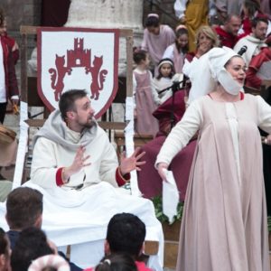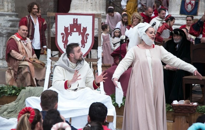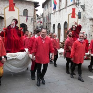 Domani, giovedì 4 maggio, al Calendimaggio 2018 di Assisi è il giorno di Madonna Primavera (qui il programma): la Parte che avrà la meglio nelle tre sfide (gara di tiro dei balestrieri, corsa delle tregge e tiro alla fune) tra i giovani atleti dei blu e dei rossi potrà eleggere la nuova Madonna Primavera fra le sue cinque fanciulle, ciascuna abbinata a sorte ad un balestriere rosso o blu. Chi di loro, tra quelli della Parte vincente, avrà totalizzato il punteggio più alto eleggerà la sua Madonna Primavera. Le Madonne, dalle 15 di giovedì, entreranno in piazza accompagnate dai cortei: la Nobilissima scende in piazza con Lucrezia Rossi, Elena Pompili, Alice Sannipola, Giulia Giubilei, Emma Menzolini, la Magnifica risponde con Giada Poggi, Sofia Simonelli, Benedetta Sforna, Carolina Ranchicchio e Maria Sole Pastorelli.