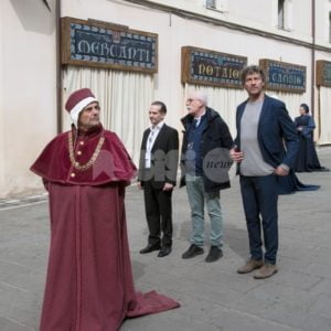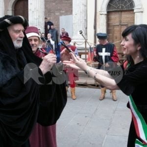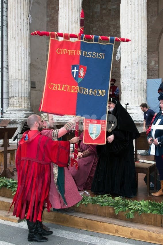 Il Calendimaggio 2018 di Assisi ha appena chiuso il suo primo giorno. Torna in piazza il Palio, portato dalla Magnifica Parte de Sotto dopo che la Nobilissima Parte de Sopra ha messo in piazza la sua voglia di rivincita e dopo che il Maestro de Campo Giuseppe Marini ha ricevuto dal sindaco Stefania Proietti le chiavi della città. Ad accompagnare la Magnifica il primo Priore Maggiore, Piero Zucchi, insieme alla moglie Vittoria Bernardini in Zucchi, applauditi anche dai partaioli blu, mentre la Nobilissima intona gli auguri di buon compleanno per il capo tamburino Andrea Vallesi. Sono seguiti i bandi di sfida, per caricare i tifosi delle due Parti: Sopra ha giocato sui Calendimaggi vinti dalla Magnifica grazie alle “copie” delle idee dei blu, Sotto ha risposto ironizzando sul coro della Nobilissima che perde da 10 anni e sulle 7 sconfitte in dieci anni.