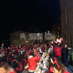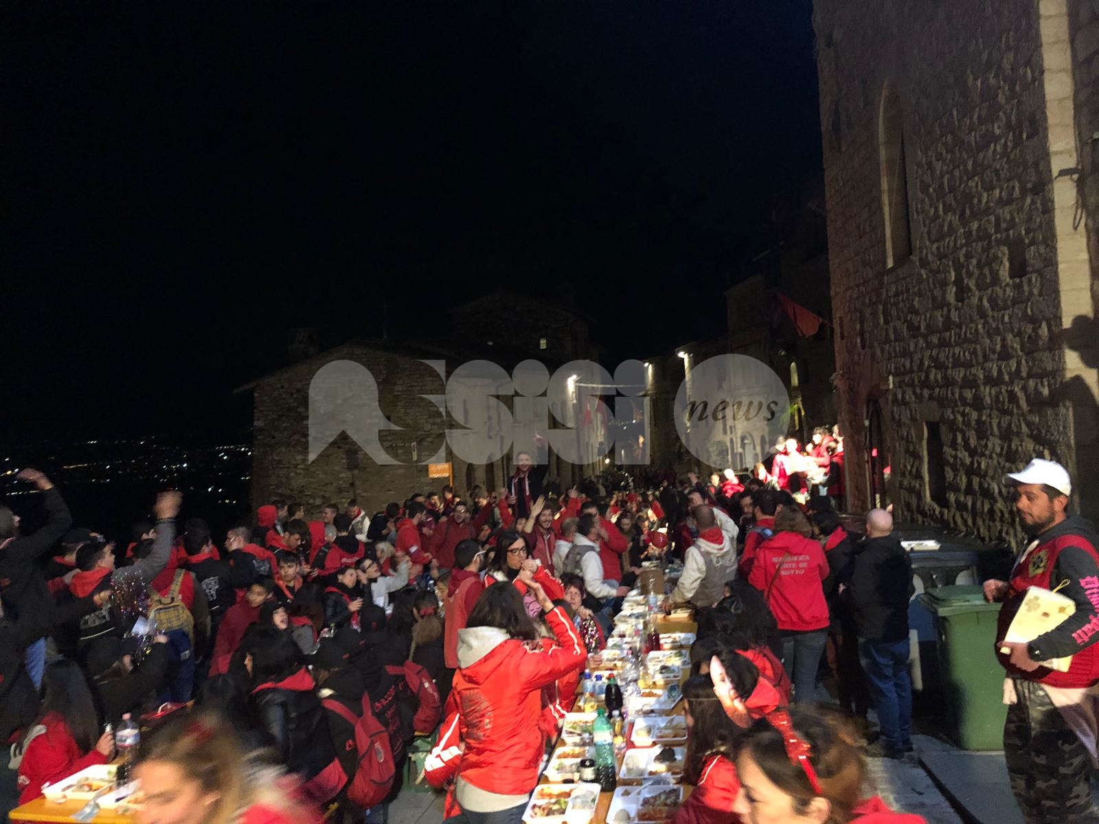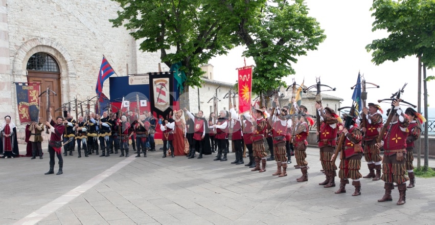 Anche le scene del Calendimaggio di Assisi 2019 in streaming, con leggera differita. Le rievocazioni di vita medievale saranno visibili nella Taverna dell’Ente Calendimaggio e nella Sala della ex Pinacoteca. Intanto, ieri, in Piazza Santa Chiara, un primo assaggio gratuito delle atmosfere del Calendimaggio, con l’esibizione degli Sbandieratori di Assisi e la sfida amichevole tra i Balestrieri di Assisi, i Balestrieri di Gualdo e i Balestrieri di Terra del Sole. Prima ancora le cene propiziatorie (fotogallery fatta con foto Facebook dei partaioli, continua dopo la gallery).