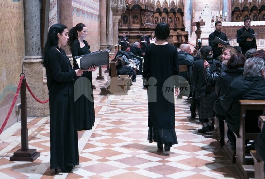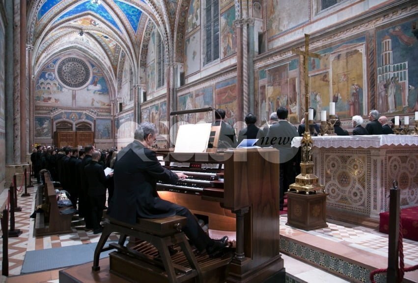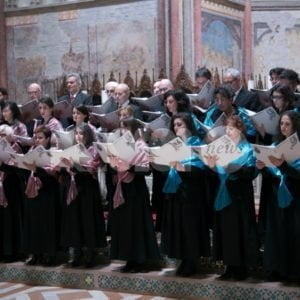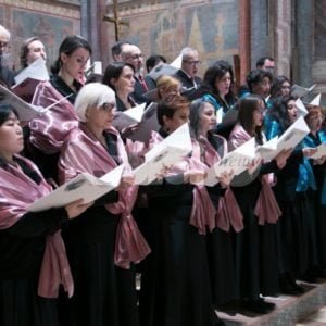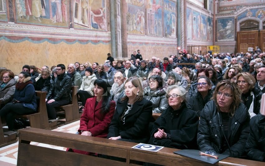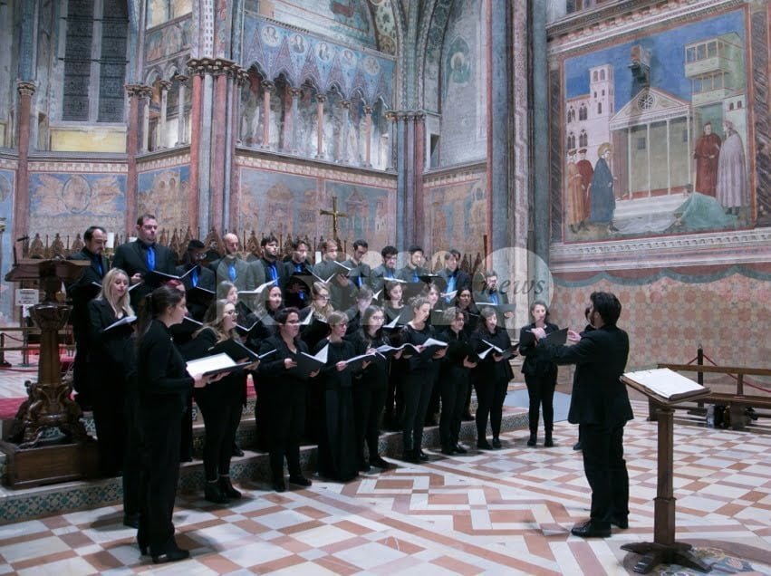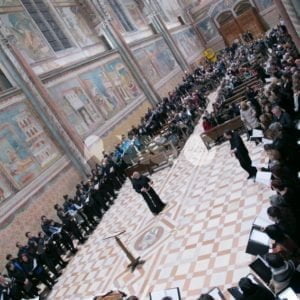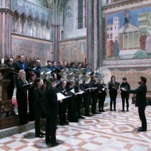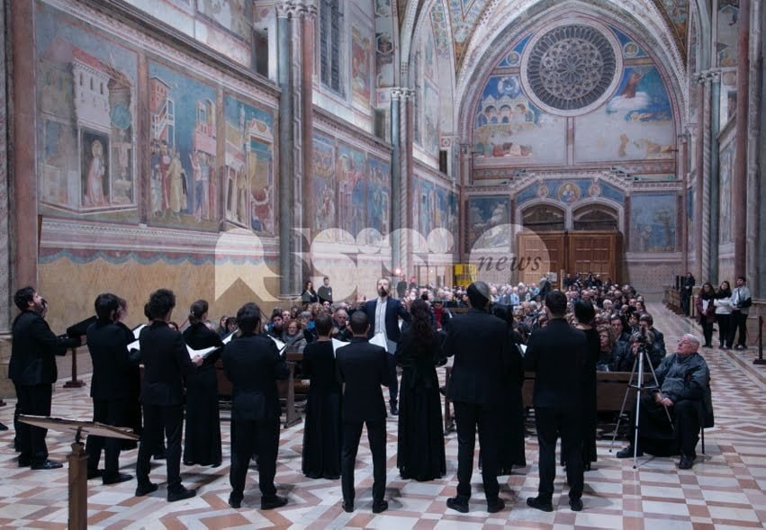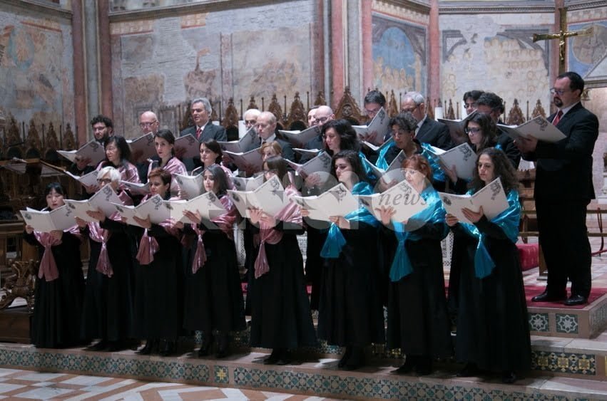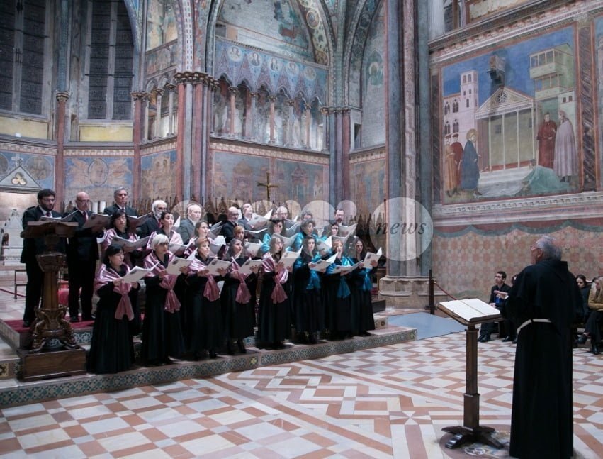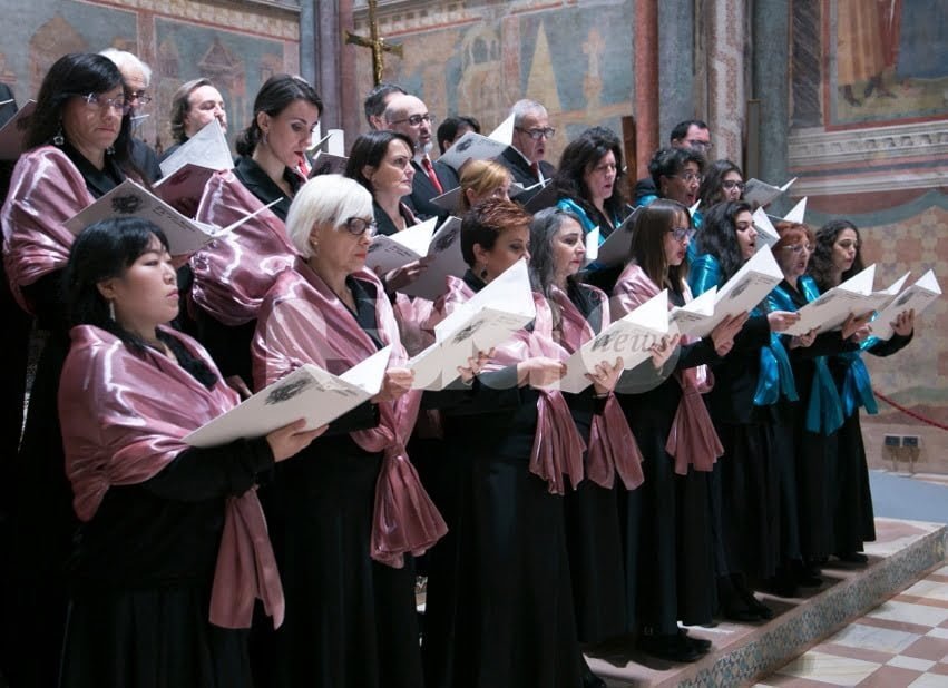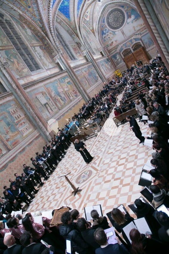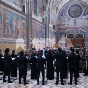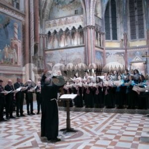 Basilica superiore di San Francesco gremita per il finale di Cantico Assisi 2017, che ha proposto un grande concerto tutti i cori esibitisi nella tre giorni preceduto dal coro Cappella musicale della Basilica Papale di San Francesco in Assisi “Compositori dall’Archivio Musicale della Basilica Superiore di San Francesco”, diretto da Padre Giuseppe Magrino, organo Eugenio Becchetti, il Coro Giovanile delle Marche, diretto da Michele Bocchini, il Coro Giovanile Umbro, diretto da Sergio Briziarelli, Ut Insieme vocale consonante, diretto da Lorenzo Donati.