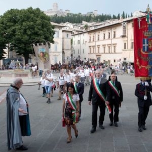 Anche la Cavalcata di Satriano 2019 ha preso forma come come una sorta di pellegrinaggio a cavallo tra Assisi e Nocera Umbra, passando per il territorio dei comuni di Spello e Valtopina, Per rievocare il racconto delle Fonti francescane i sindaci e le municipalità dei comuni si scambiano simbolicamente l’augurio francescano di “pace e bene”. Messaggeri di questo augurio, sono i cavalieri che percorrono le strade e i sentieri, dai toponimi antichi, nominati negli statuti e negli antichi documenti dei luoghi che l’itinerario attraversa.
