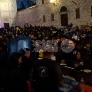Dopo la presentazione delle Madonne Primavera, le cene propiziatorie 2017 delle due Parti: Piazza San Rufino per la Nobilissima Parte de Sopra, via Fontebella per la Magnifica Parte de Sotto. Centinaia i partaioli ad ogni cena, che danno inizio alla Festa fra scene di parte e cortei (di giorno e di notte) e giochi.