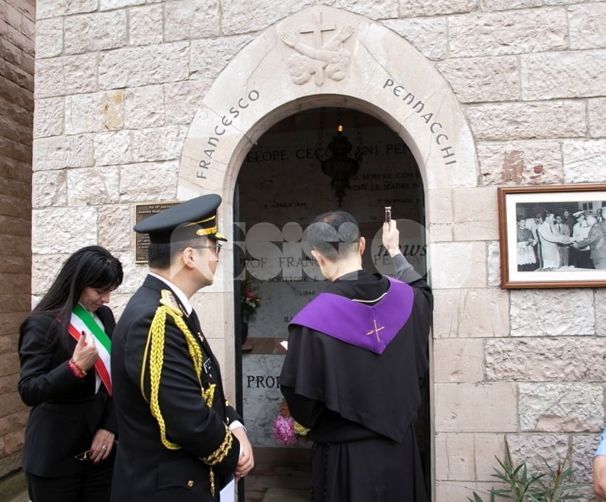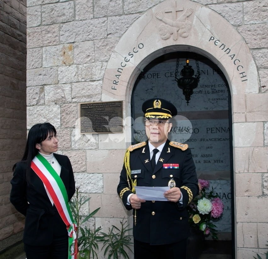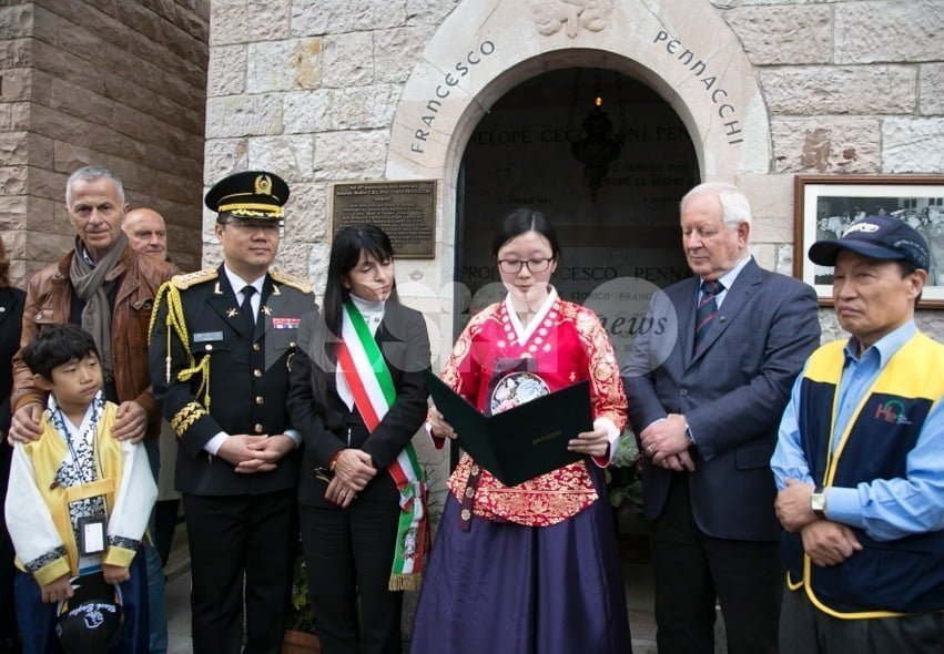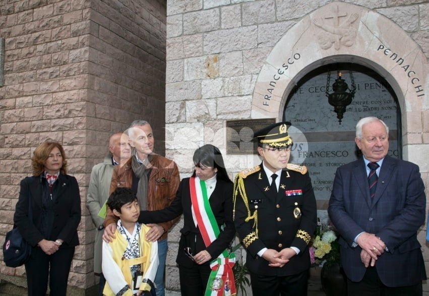 Omaggio a Fabio Pennacchi, generale medico della Croce Rossa Italiana: la cerimonia si è svolta nel pomeriggio di ieri sulla tomba di Pennacchi al cimitero di Assisi. A organizzarla Massimo Zubboli, accompagnato da una delegazione guidata dal colonnello Huang, composta da 23 studenti che hanno scritto la più bella lettera di gratitudine indirizzata ai veterani dei Paesi amici che parteciparono alla guerra di Corea, e dal sindaco Stefania Proietti.