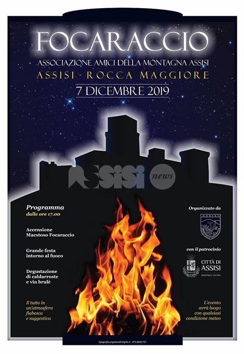 Sabato 7 dicembre, nel piazzale antistante la Rocca Maggiore di Assisi, dalle ore 17 in poi, si rinnova la tradizione con il Focaraccio dell’Immacolata 2019. Un evento organizzato dagli Amici della Montagna per mantenere e rinverdire quella tradizione popolare molto cara alla campagna circostante la città di Assisi.