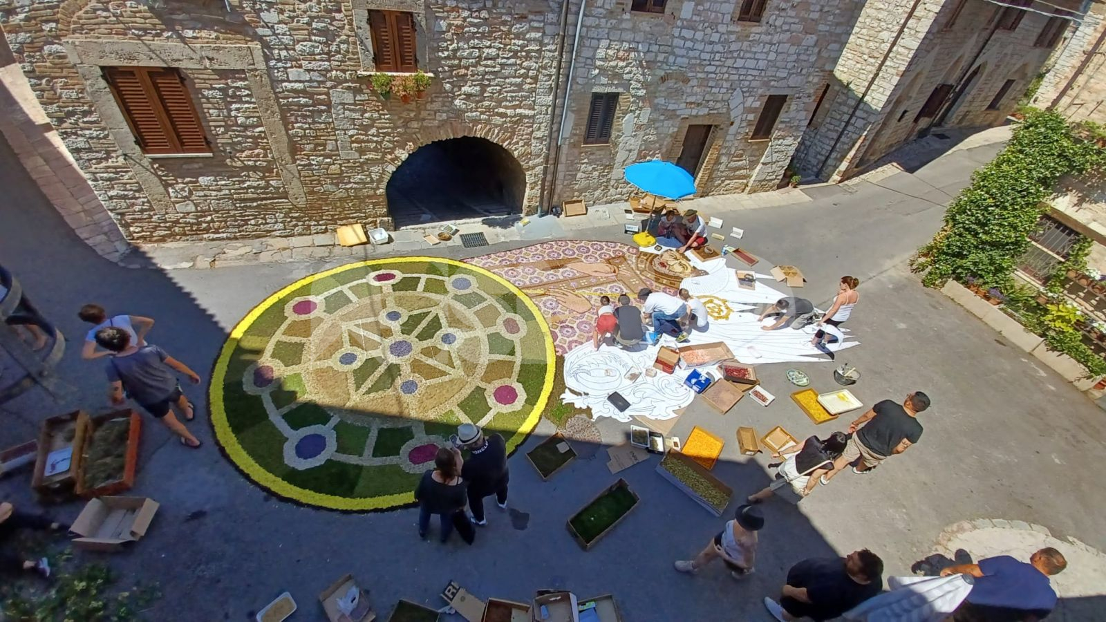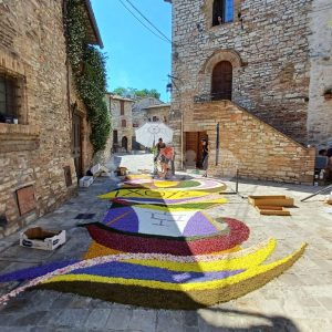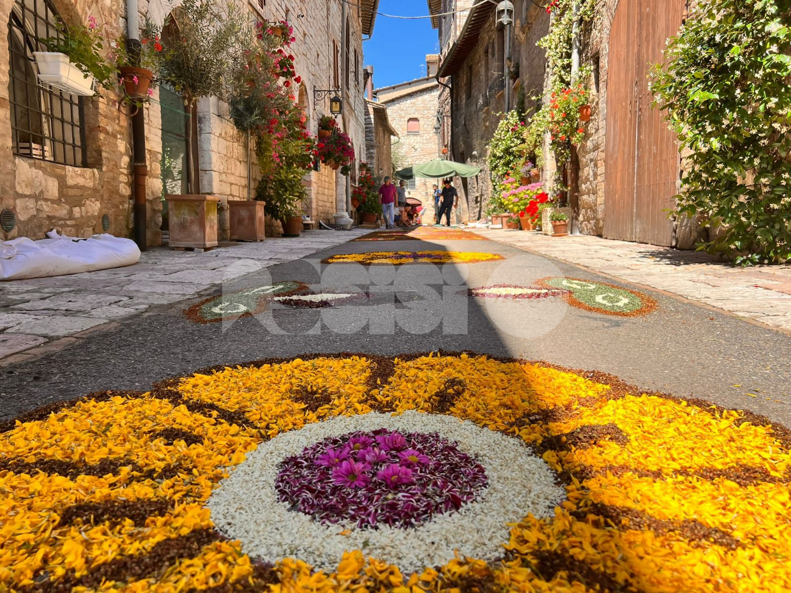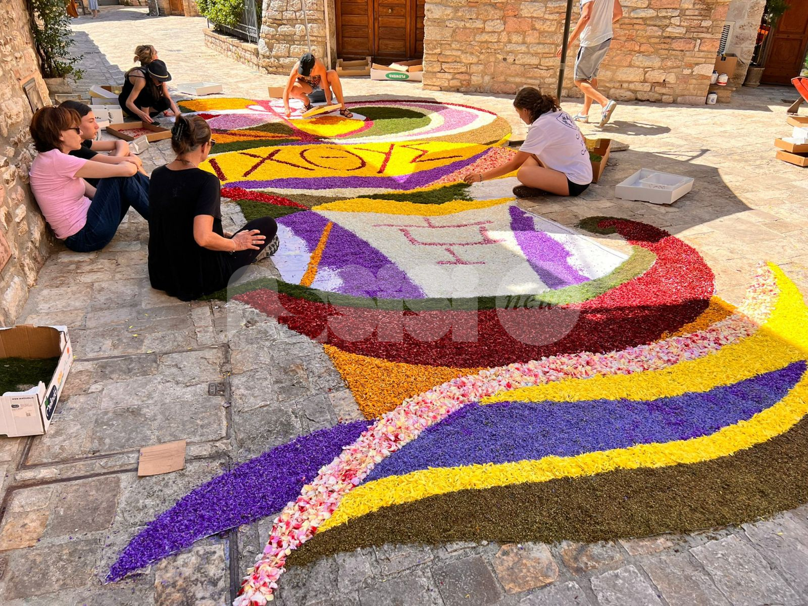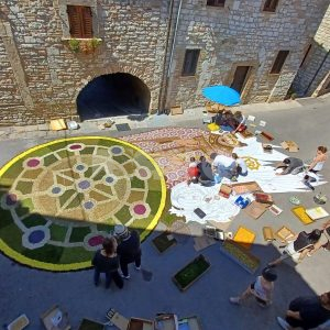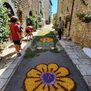Le tradizionali Infiorate 2022 ad Assisi sono state allestite nelle caratteristiche vie di Piazza Nova, in particolare Vicolo Bovi, via Montecavallo e via Porta Perlici. Un momento di socializzazione anche culinario, con i residenti che hanno aperto le loro case per cucinare gli “arvoltoli” con cui sfamare grandi e piccoli. Non è mancata la tradizionale “processione delle Pulci”. Dopo la messa in Cattedrale, le confraternite e i religiosi sfileranno intorno alle 18 con il Santissimo Sacramento per le viuzze interne di Piazza Nova.