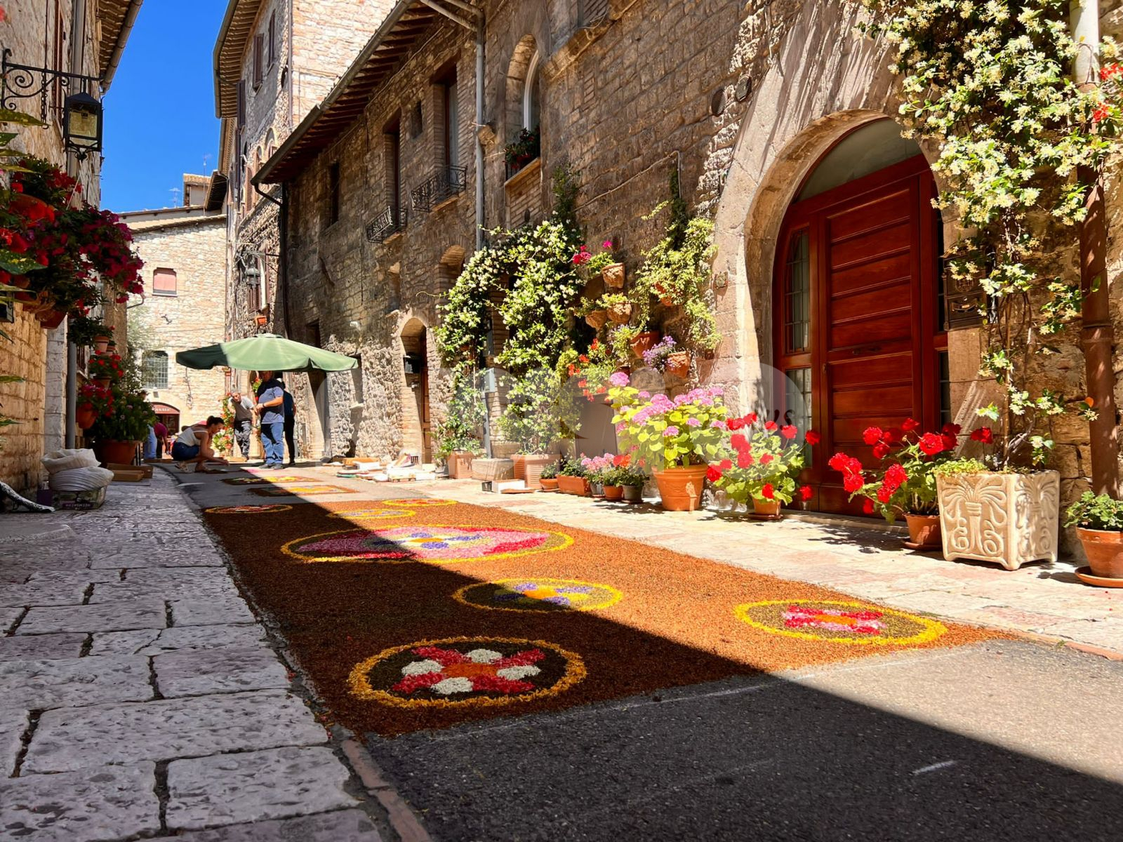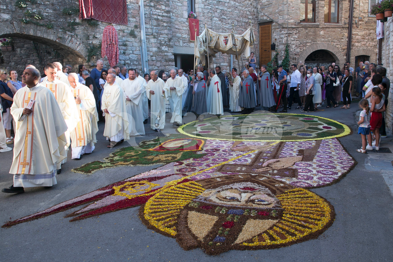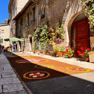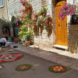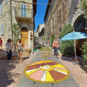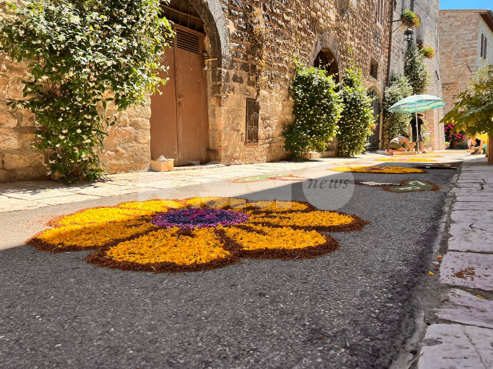 Le tradizionali Infiorate 2022 ad Assisi sono state allestite nelle caratteristiche vie di Piazza Nova, in particolare Vicolo Bovi, via Montecavallo e via Porta Perlici. Un momento di socializzazione anche culinario, con i residenti che hanno aperto le loro case per cucinare gli “arvoltoli” con cui sfamare grandi e piccoli. Non è mancata la tradizionale “processione delle Pulci”. Dopo la messa in Cattedrale, le confraternite e i religiosi sfileranno intorno alle 18 con il Santissimo Sacramento per le viuzze interne di Piazza Nova.