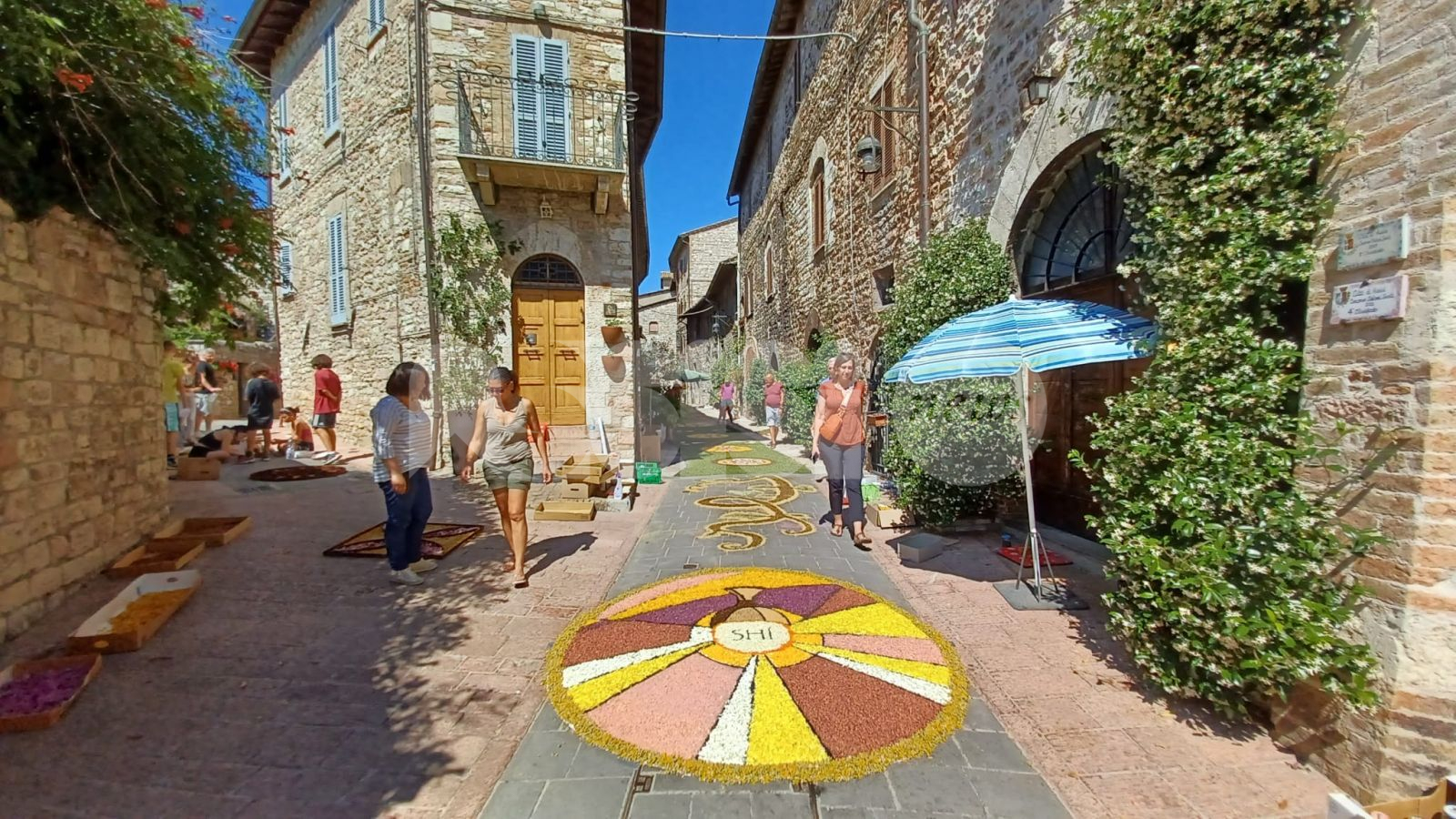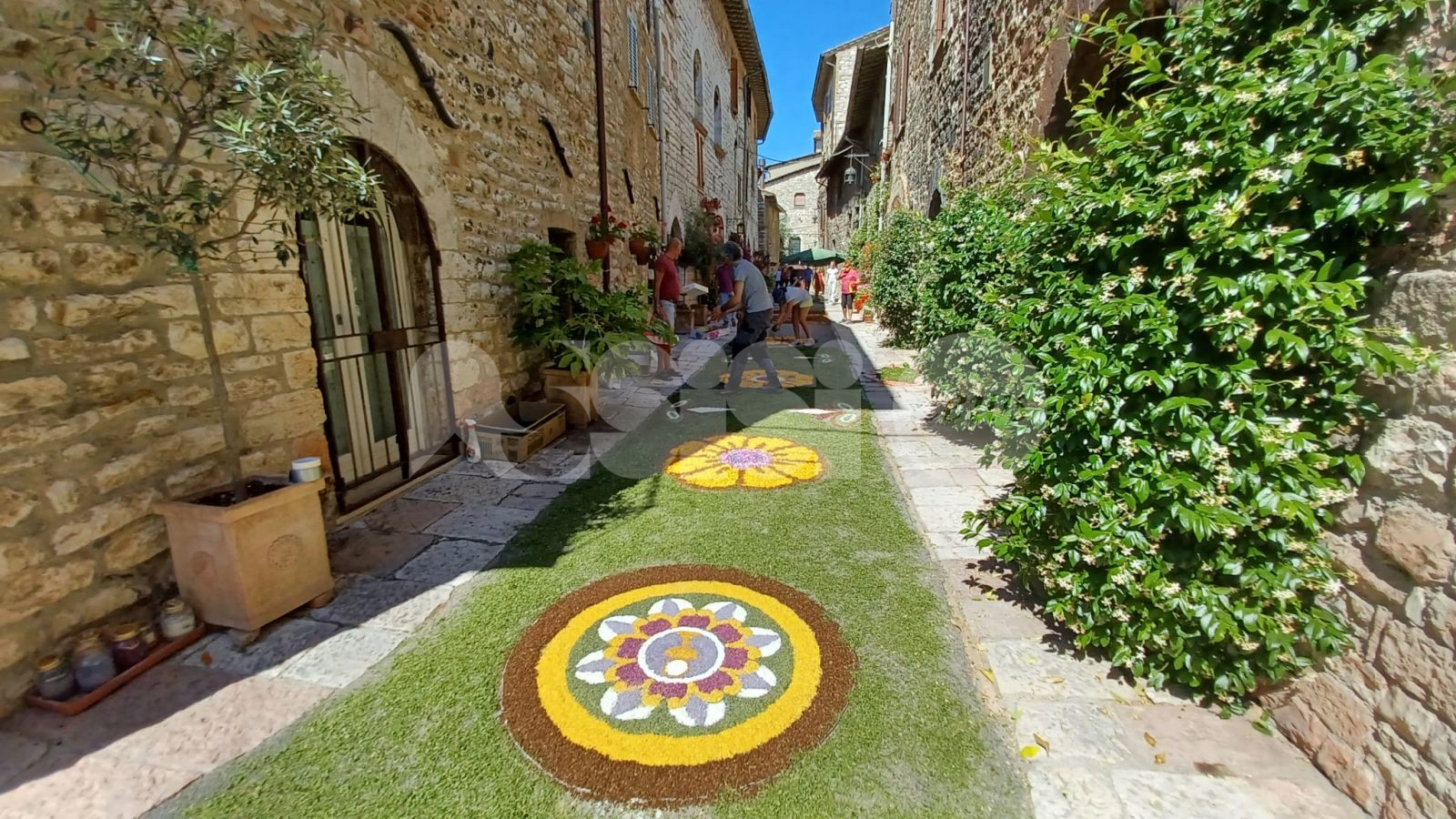 Neanche la pandemia aveva fermato questo sentito appuntamento, visto che in occasione del Corpus Domini 2021 i residenti avevano esposto sui balconi e sulle finestre dei drappi e delle tovaglie e dei petali sulla strada. Era comparso anche qualche piccolo accenno di infiorate, realizzato nel segno dei distanziamenti e dei sani comportamenti per la prevenzione da contagio del coronavirus. In molti si erano affacciati al passaggio del Santissimo senza dar luogo ad assembramenti per i vicoli. E ora la tradizione è tornata di nuovo a viversi in pienezza.