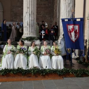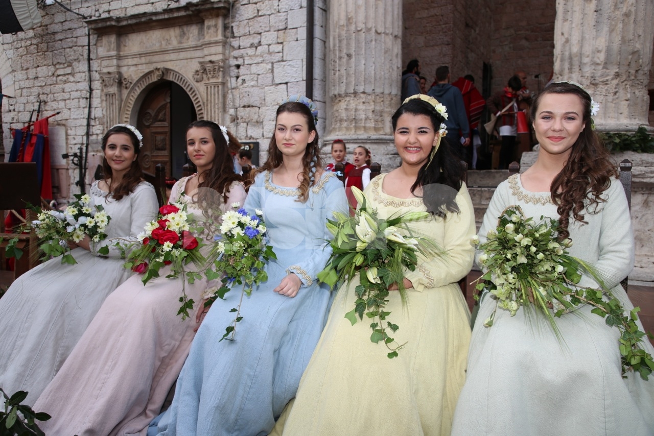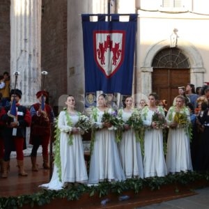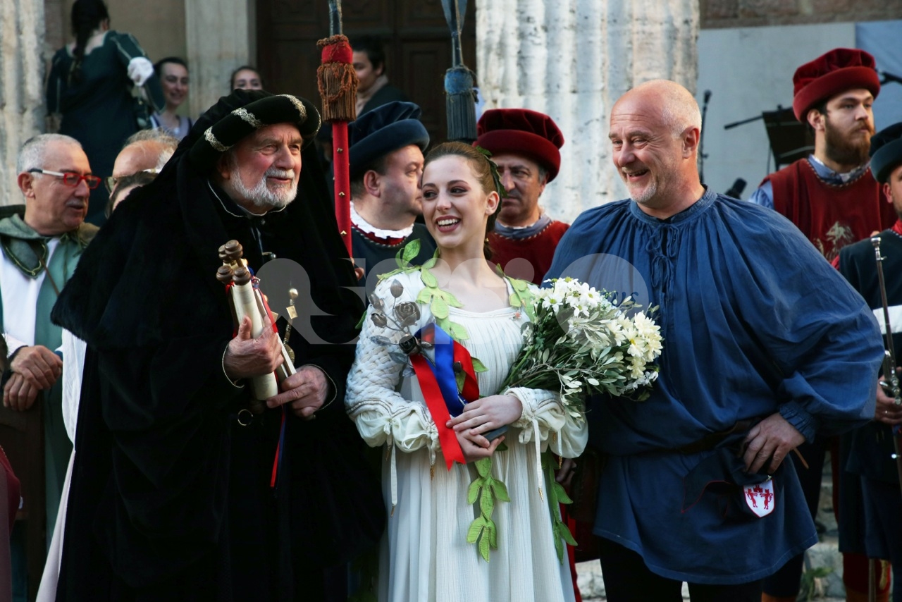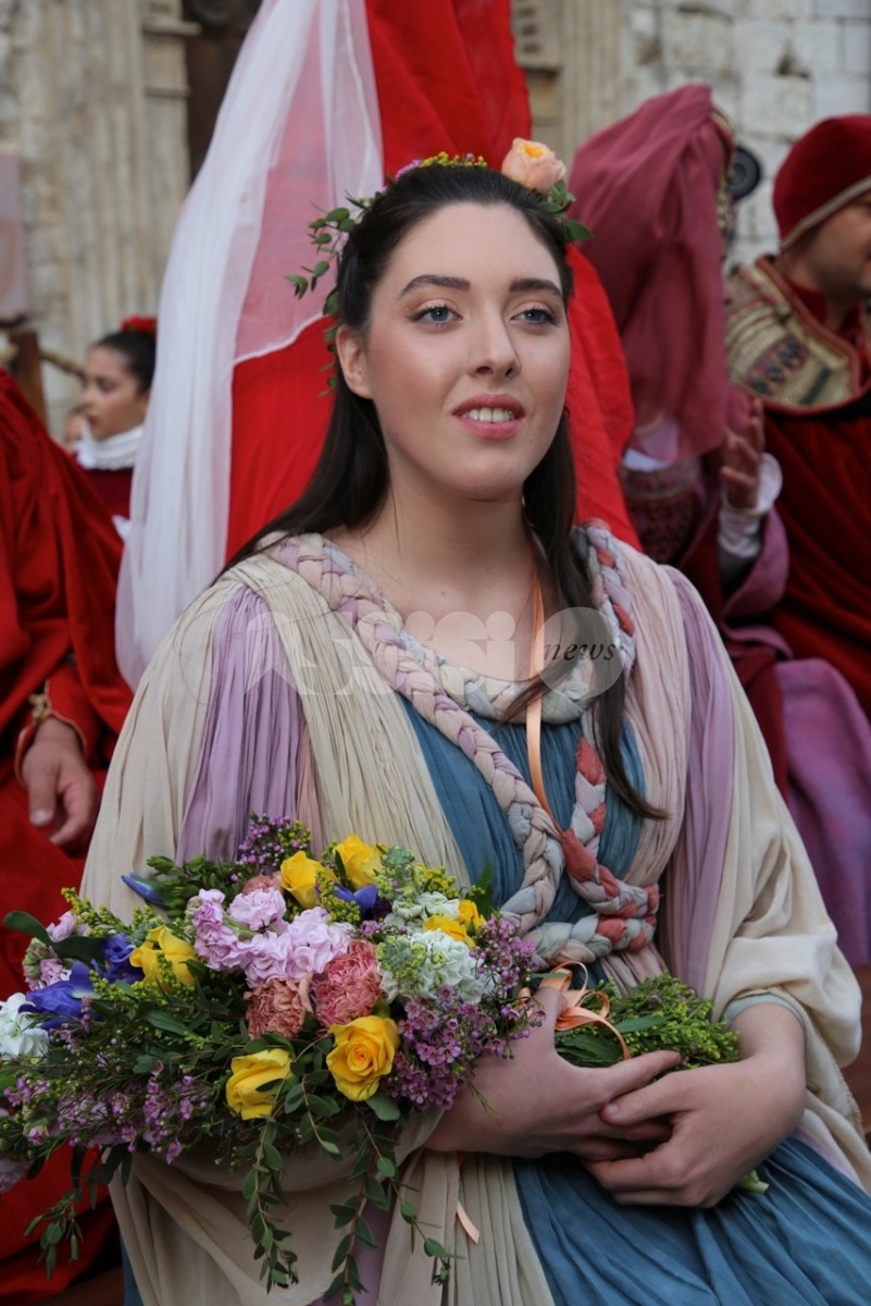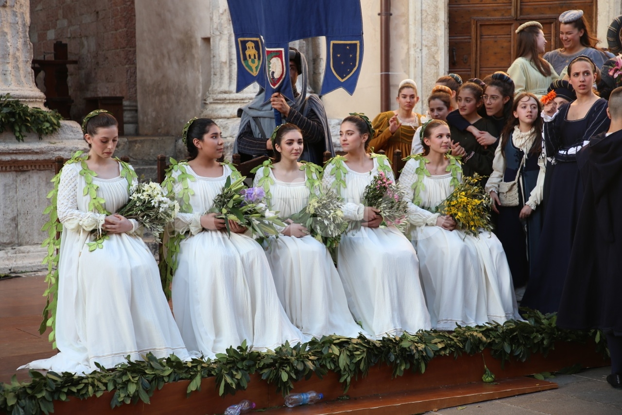 Madonna Primavera 2019 è Azzurra Campagnacci. La regina della Festa è stata eletta dopo le prove d’agilità (gara di tiro dei Balestrieri, corsa delle tregge e tiro alla fune) tra gli atleti di Magnifica Parte de Sotto e Nobilissima Parte de Sopra. William Bernardini de Sopra, migliore dei suoi, elegge Monna Azzurra Campagnacci.