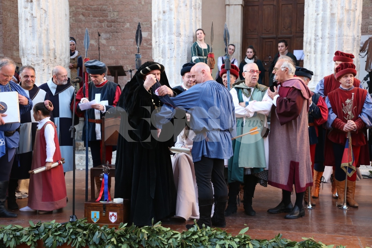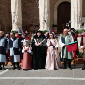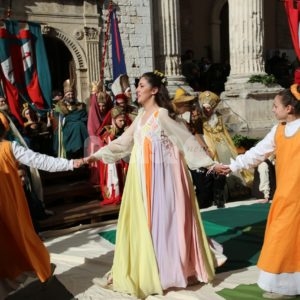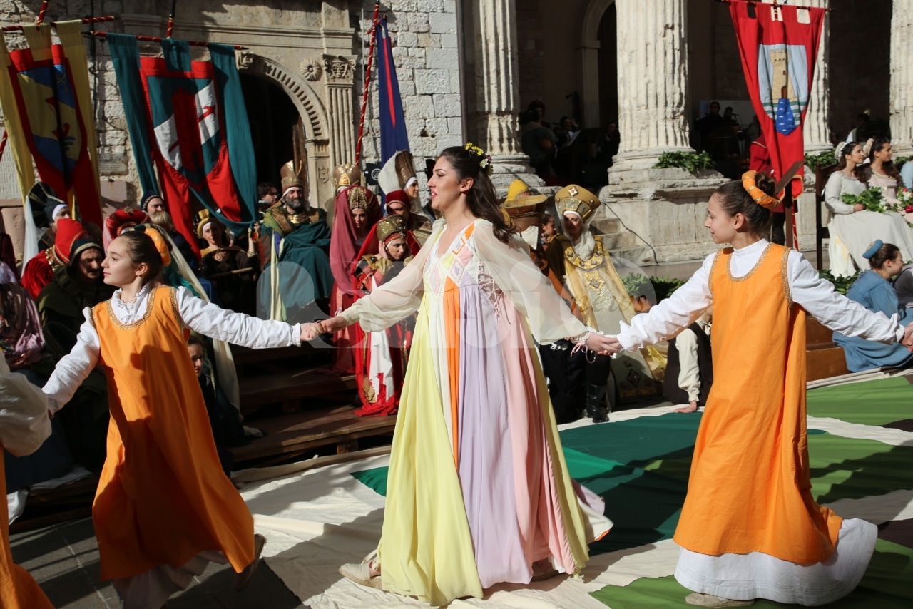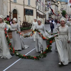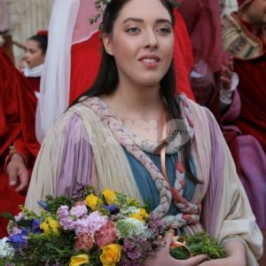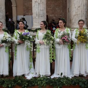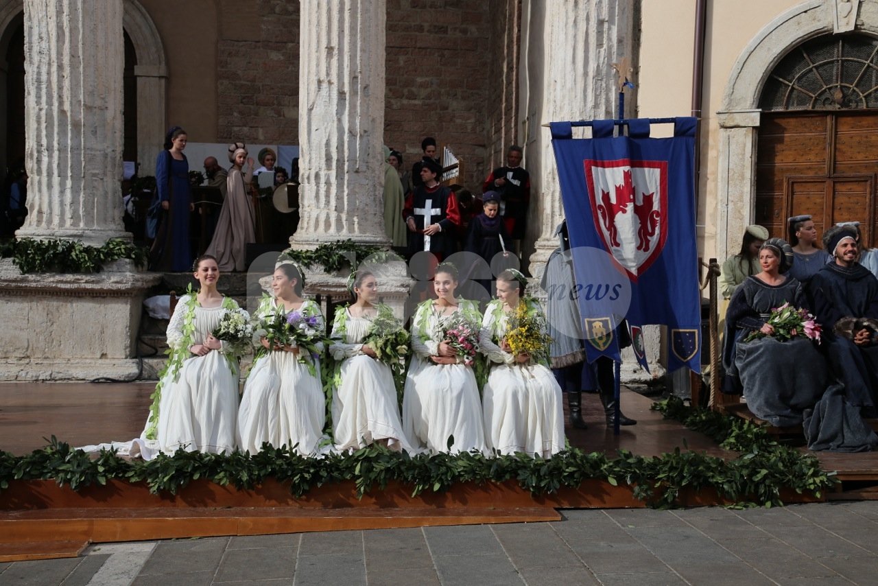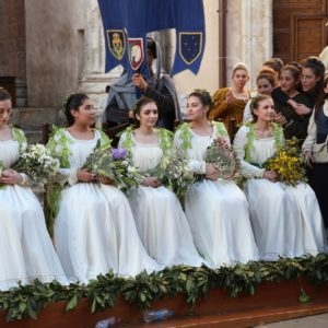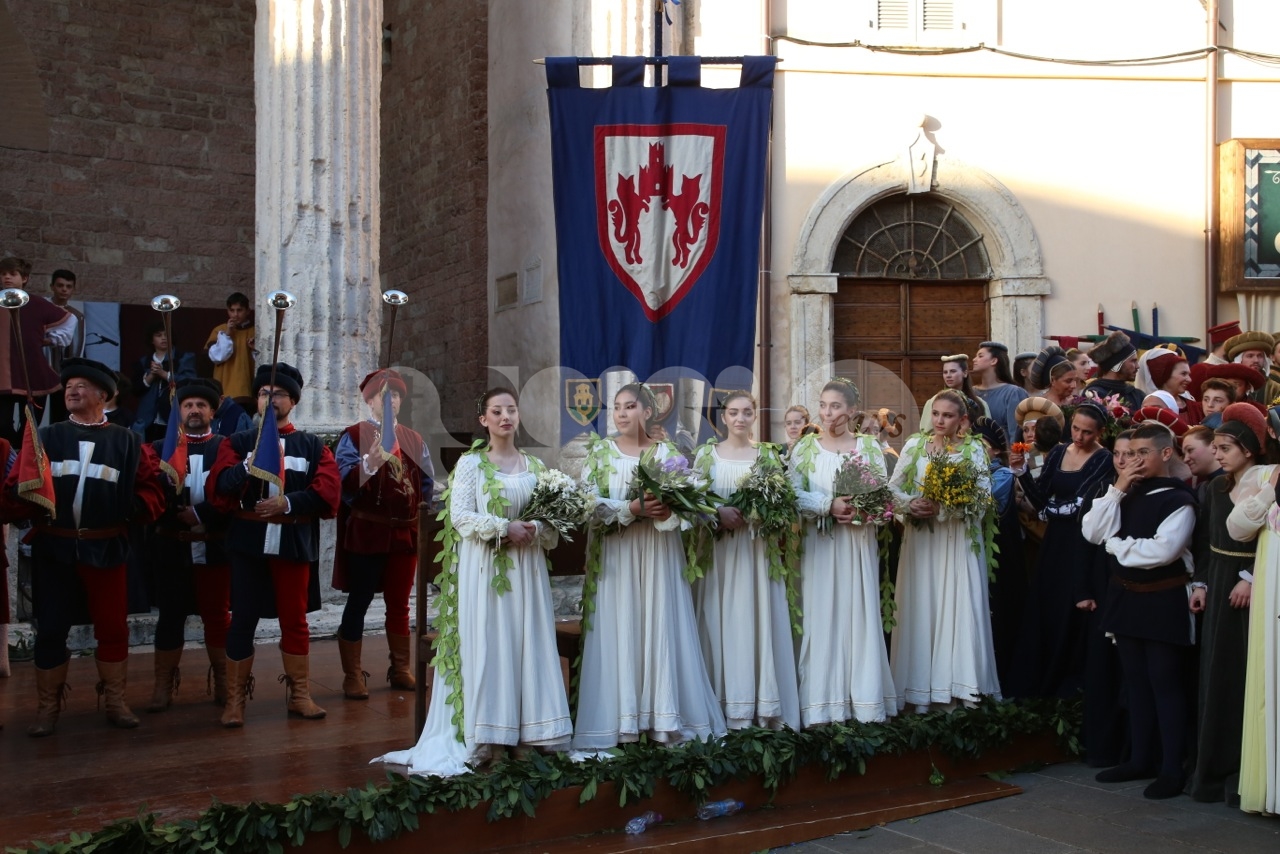 Madonna Primavera 2019 è Azzurra Campagnacci. La regina della Festa è stata eletta dopo le prove d’agilità (gara di tiro dei Balestrieri, corsa delle tregge e tiro alla fune) tra gli atleti di Magnifica Parte de Sotto e Nobilissima Parte de Sopra. William Bernardini de Sopra, migliore dei suoi, elegge Monna Azzurra Campagnacci.