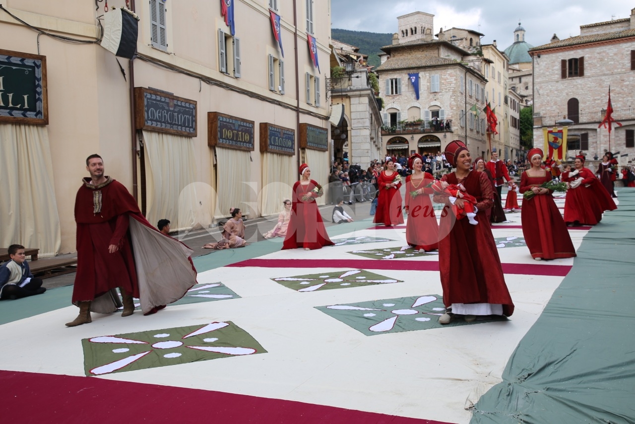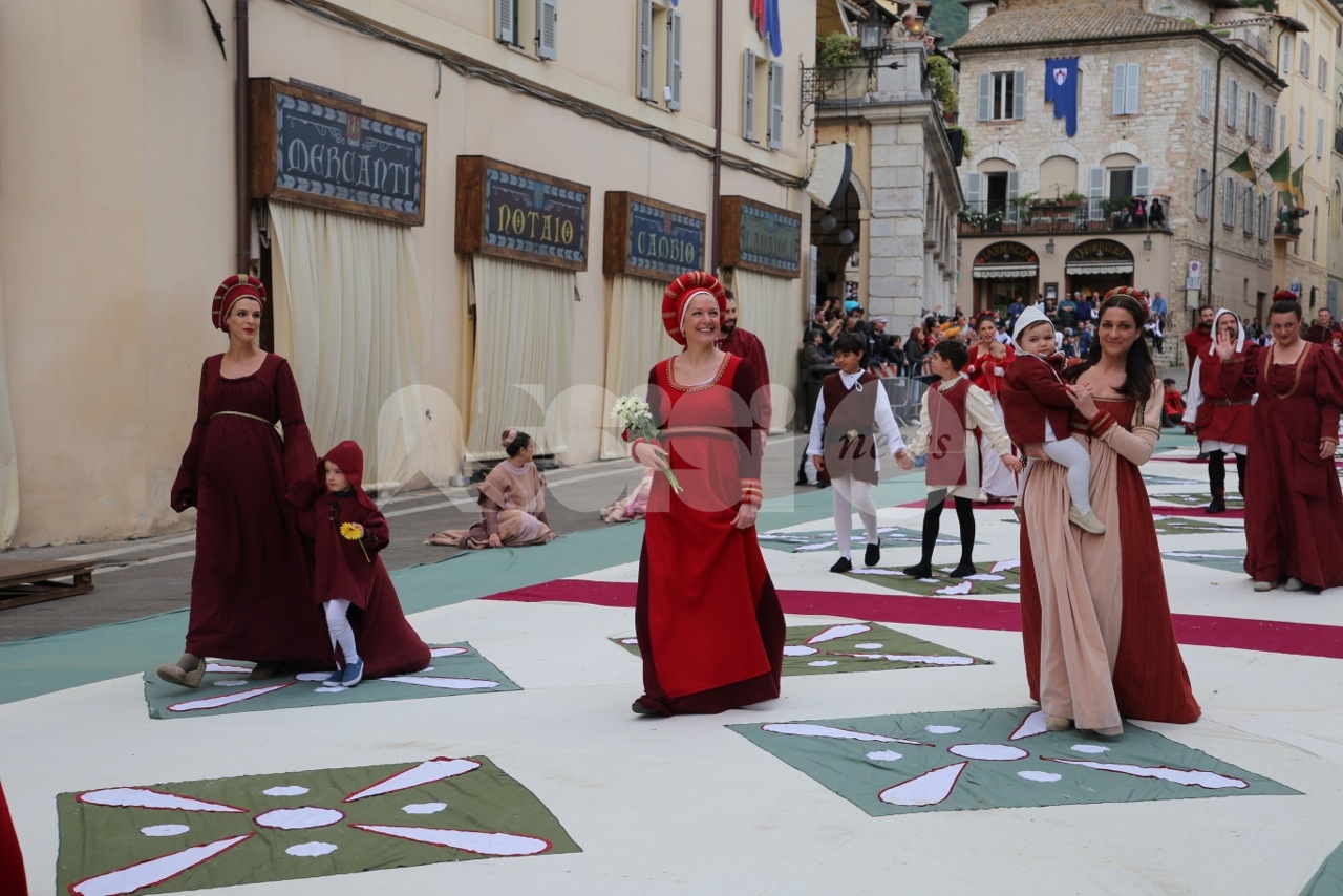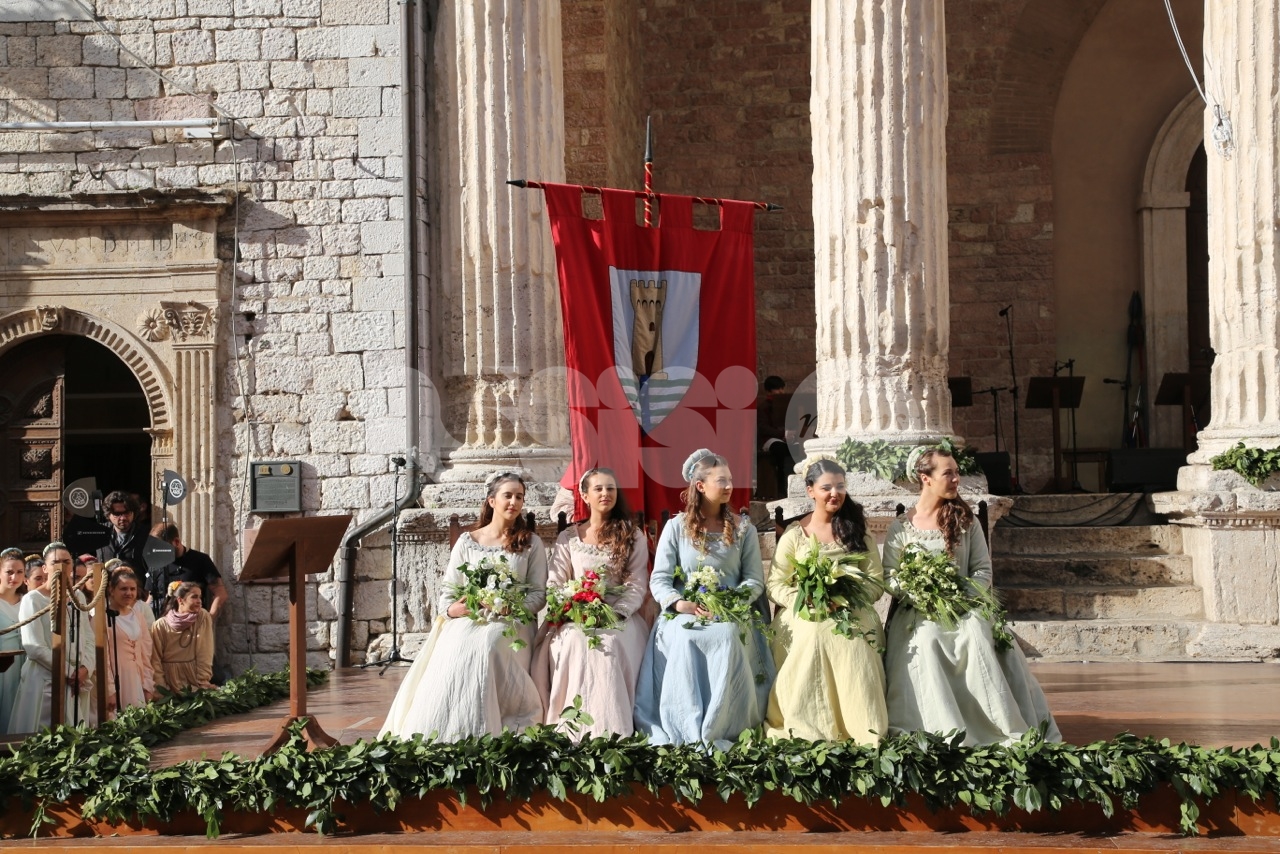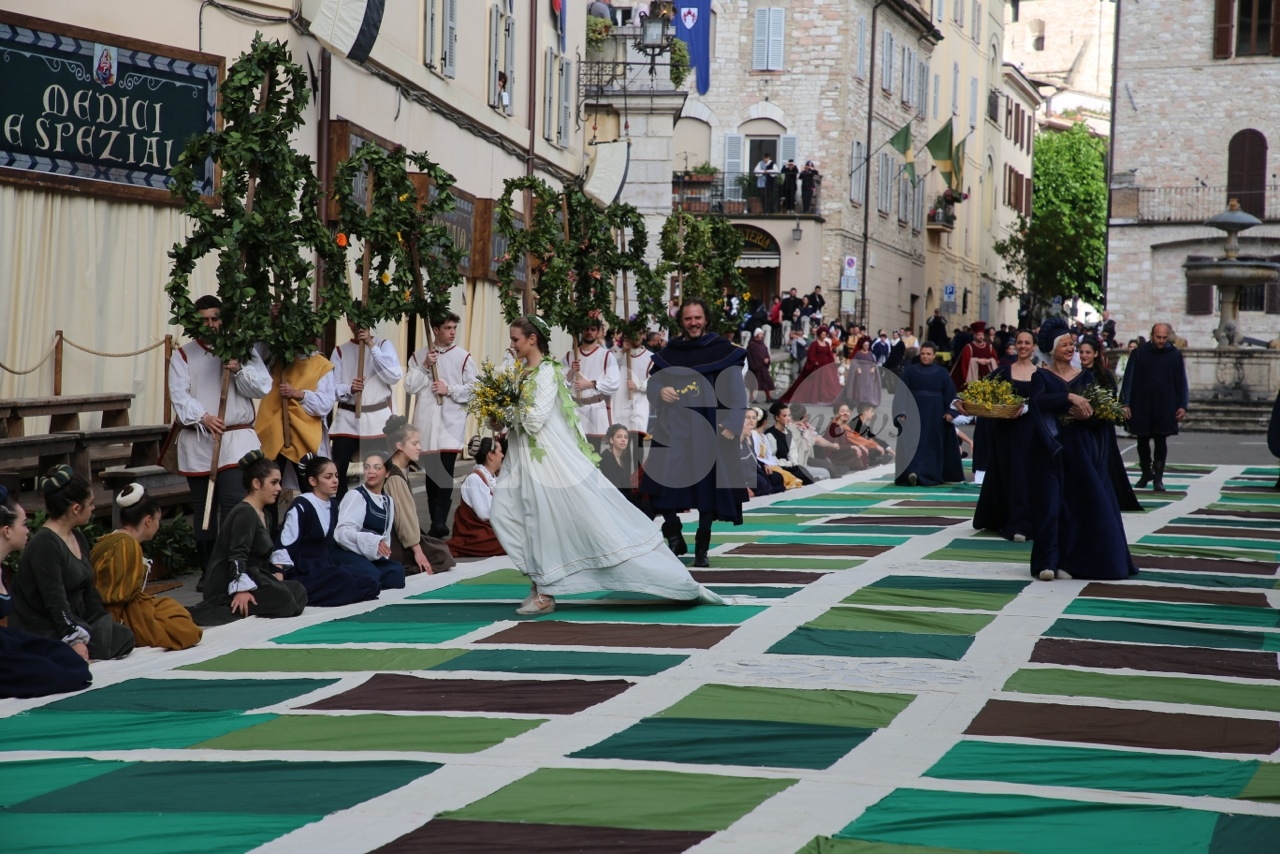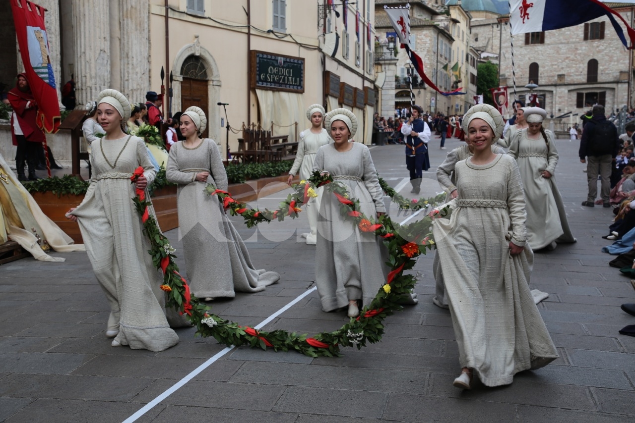 Prima di Madonna Primavera 2019, le sfilate delle due parti. Le Madonne della Magnifica, Carolina Serena, Rim Farisse, Sofia Perelli, Olga Pecetta e Benedetta De Giovanni sono entrate in piazza con un fiore rappresentativo ciascuna (i colori della Parte, gli atleti che rappresentano la forza e la tenacia) che caratterizzano la festa di primavera e l’orgoglioso spirito di appartenenza a Sotto. Le Madonne della Nobilissima (Anna Paola Marchesi, Michela Sannipola, Azzurra Campagnacci, Ginevra Salucci, Justine Desiree Garces Freire) sono invece state introdotte da un corteo che le ha viste sfilare tutte con un fiore rappresentativo della primavera (ginestra, anemone, sambuco, giglio, margherita), accompagnate dagli atleti de Parte de Sopra e dalle loro famiglie.