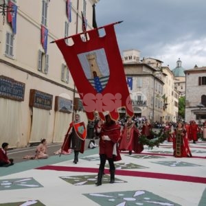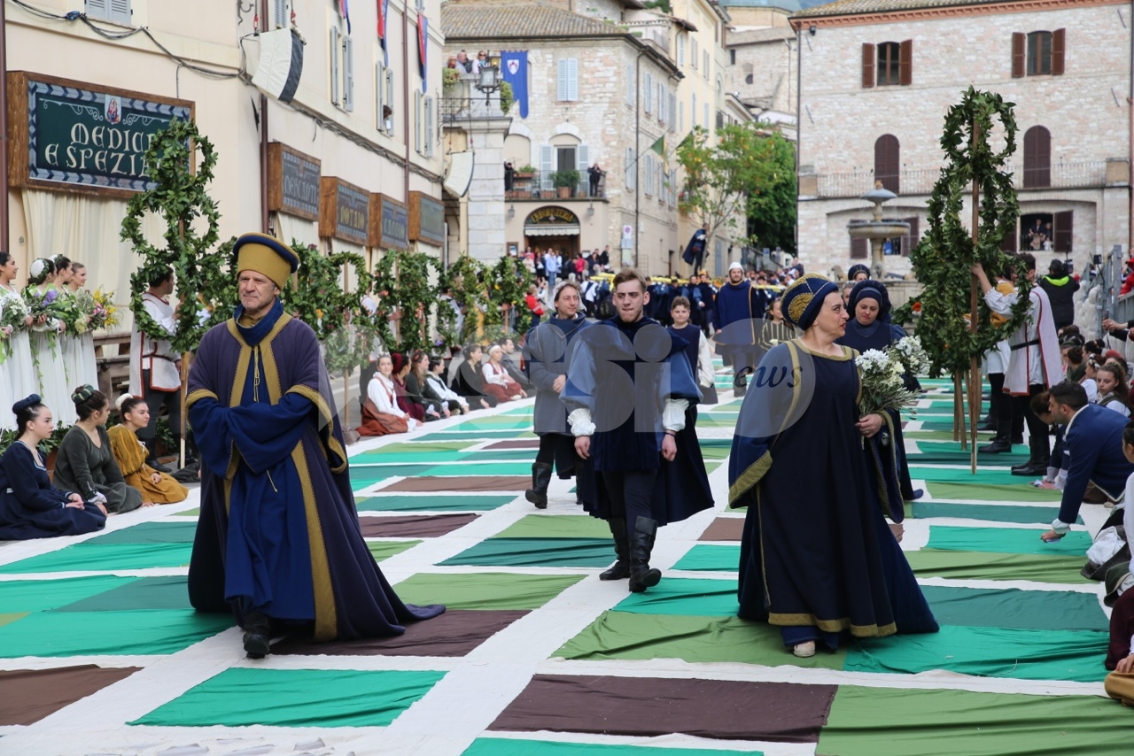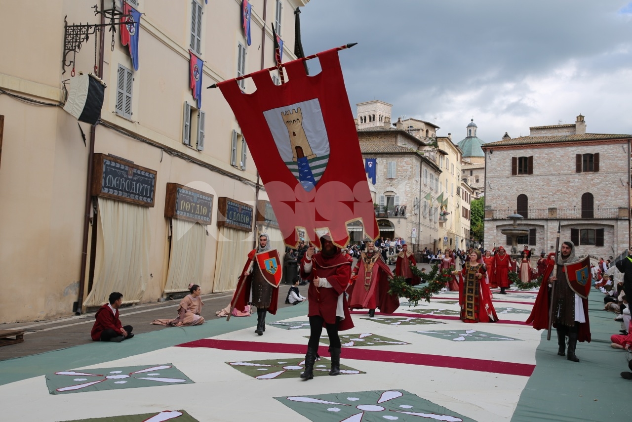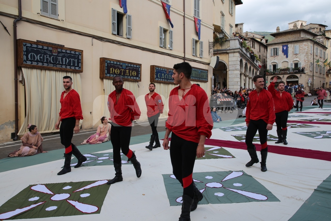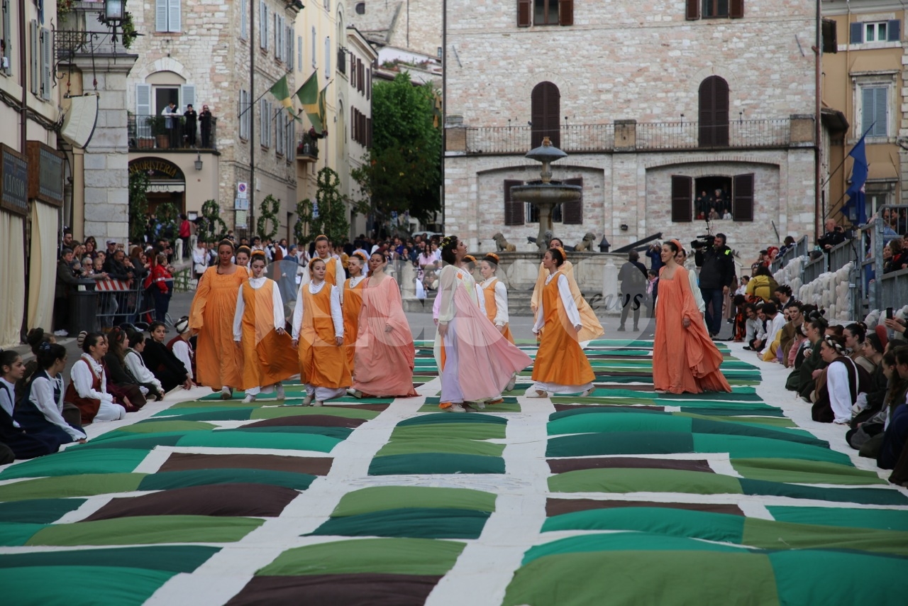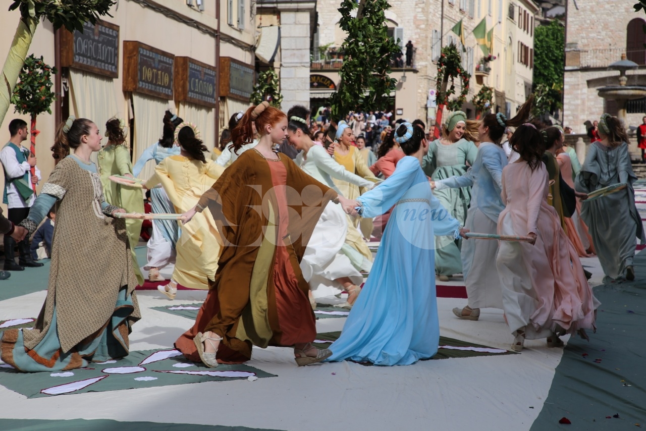 Prima di Madonna Primavera 2019, le sfilate delle due parti. Le Madonne della Magnifica, Carolina Serena, Rim Farisse, Sofia Perelli, Olga Pecetta e Benedetta De Giovanni sono entrate in piazza con un fiore rappresentativo ciascuna (i colori della Parte, gli atleti che rappresentano la forza e la tenacia) che caratterizzano la festa di primavera e l’orgoglioso spirito di appartenenza a Sotto. Le Madonne della Nobilissima (Anna Paola Marchesi, Michela Sannipola, Azzurra Campagnacci, Ginevra Salucci, Justine Desiree Garces Freire) sono invece state introdotte da un corteo che le ha viste sfilare tutte con un fiore rappresentativo della primavera (ginestra, anemone, sambuco, giglio, margherita), accompagnate dagli atleti de Parte de Sopra e dalle loro famiglie.