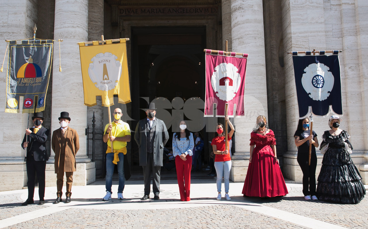 (AssisiNews ha da poco aperto un portale tutto dedicato agli eventi, assisieventi.it) Celebrazioni raccolte ma sentite a Santa Maria degli Angeli per J’Angeli 800 Palio del Cupolone 2021, dal significativo titolo “La ripartenza” dopo lo stop dell’anno scorso.