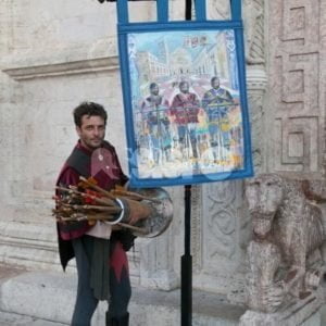 Nella sede di Piazza del Comune, oltre alle numerose performance del Gruppo fuoco, danza e musici, particolare attrazione ha esercitato, su ospiti e pellegrini, la due giorni del Mercatino medievale del Palio di San Rufino 2017, a ricordo di quell’appuntamento fieristico in occasione della festa del Patrono di Assisi, che vedeva partecipi molte città dell’Italia centrale. A sfidarsi nella gara a squadre di domenica pomeriggio, i Balestrieri dei Terzieri di Santa Maria, San Francesco, San Rufino, affiancata dalla gara individuale sul Tasso dipinto dall’artista Anna Scatolini, simboli del grande fervore anche artistico-culturale che ha sempre animato i balestrieri assisani. Il ‘drappo’ del Palio di San Rufino 2017 è invece opera dell’artista Franco Susta.