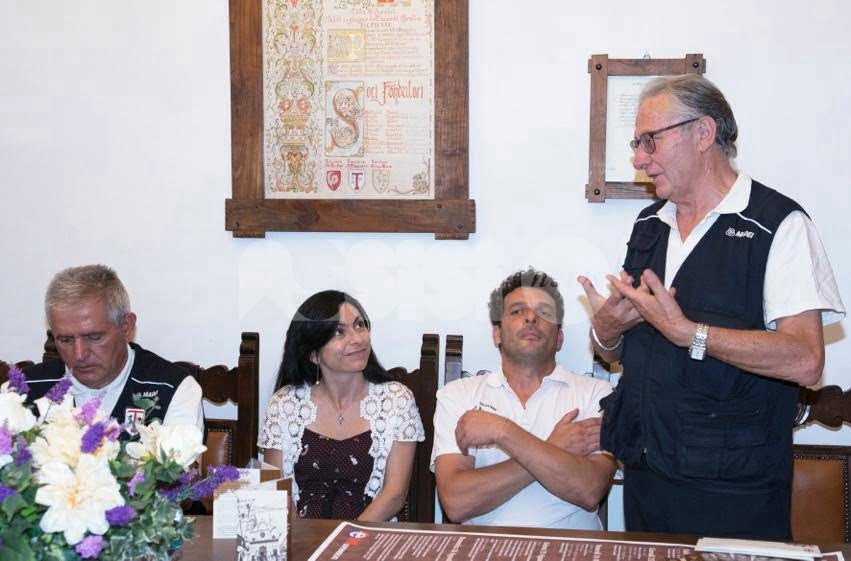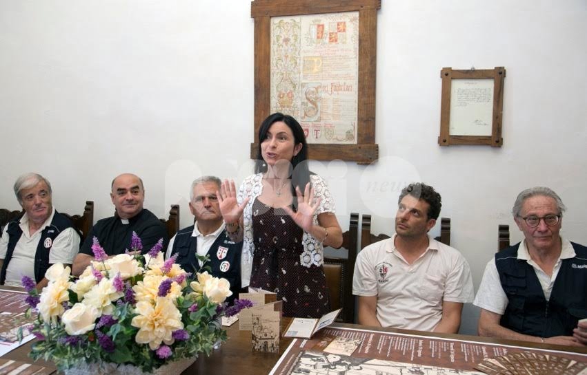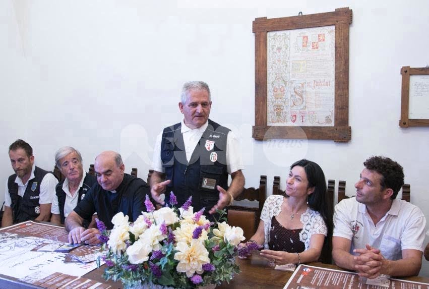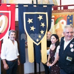 “Il Palio di San Rufino è la nostra Festa”, hanno affermato con orgoglio i Balestrieri della Compagnia di Assisi la cui presentazione è stata contrassegnata da un minuto di silenzio per ricordare il dramma di Genova. Erano presenti, oltre al presidente Claudio Menichelli, i vice presidenti Giulio Benincampi e Guido Sensi, il maestro d’armi Fabio Martellini, il tesoriere Andrea del Lugo, il segretario Andrea Morettoni, il tenutario dei beni Marino Fabretti, il responsabile delle sedi Sergio Mariucci.