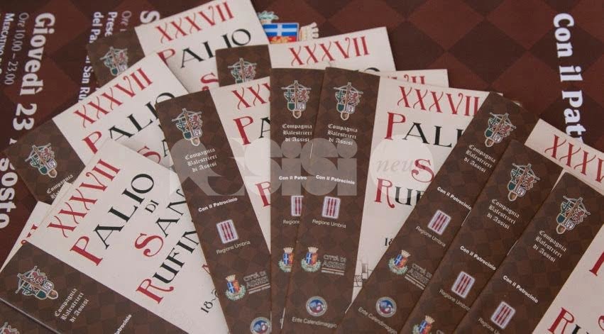La trentottesima edizione del Palio di San Rufino parte giovedì 23 agosto e venerdì 24 con il tradizionale mercatino (dalle 10 alle 23, in Piazza del Comune e aree limitrofe, nello specifico via Arco dei Priori, Volta Pinta e Sala delle Logge); in entrambi i giorni, alle 21 in Piazza del Comune, è previsto lo spettacolo dei gruppi della Compagnia Balestrieri. Sabato 25 agosto alle 17.30 è la volta del corteo storico verso la Cattedrale di San Rufino, con alle 18 la messa celebrata dal vescovo Sorrentino e il battesimo dei piccoli balestrieri e l’investitura religiosa dei nuovi balestrieri. Alle 20 in Piazza San Rufino la cena propiziatoria per la disputa del Palio, con alle 22 lo spettacolo del Gruppo Fuoco.