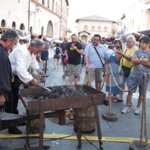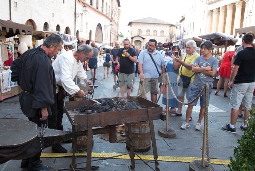 Gli espositori (una quarantina) hanno sfidato ogni cattiva previsione meteo per essere in piazza del Comune e dintorni. Maestri nell’artigianato locale, regionale e anche nazionale, sono presenti per due giorni nel cuore della città. Il Mercatino di san Rufino, piccolo expo manifatturiero, da secoli accompagna la Festa del Palio, ad opera della Compagnia Balestrieri di Assisi, quest’anno alla 38esima edizione, con la rievocazione storica della tradizionale fiera cittadina che si teneva nei giorni della festività del santo Patrono di Assisi. Antichi documenti ora conservati nella biblioteca comunale di Città di Castello citano questo mercato come evento significativo per la città del Poverello.” Oggi, come allora, la Compagnia Balestrieri, fedele erede di tanta eredità, si è proposta anche quest’anno – ricorda Guido Sensi – di far rivivere quel mercato con l’esposizione di prodotti del ferro, del rame, del filo, del cuoio, che onorano la tradizione di questa nostra antica città in un settore, in particolare quello del ferro battuto, che ci ha reso famosi nel mondo” .