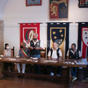 Il consigliere Claudio Menichelli ha ricordato il rispetto assoluto della tradizione, malgrado l’ interruzione e la limitazione per continuare a mantenere alti nel mondo l’immagine e i valori di Assisi. “ Desidero sottolineare i 40 anni della nostra Festa – ha concluso il maestro d’armi Fabio Martellini – non solo per il suo significato storico e ludico, ma perchè questo è il primo evento nato per commemorare chi ha fatto parte della nostra Compagnia, un omaggio anche laico accanto a quello religioso della santa Messa in loro memoria. Ci stiamo preparando anche per le future dispute con le cittĂ italiane della balestra antica”.