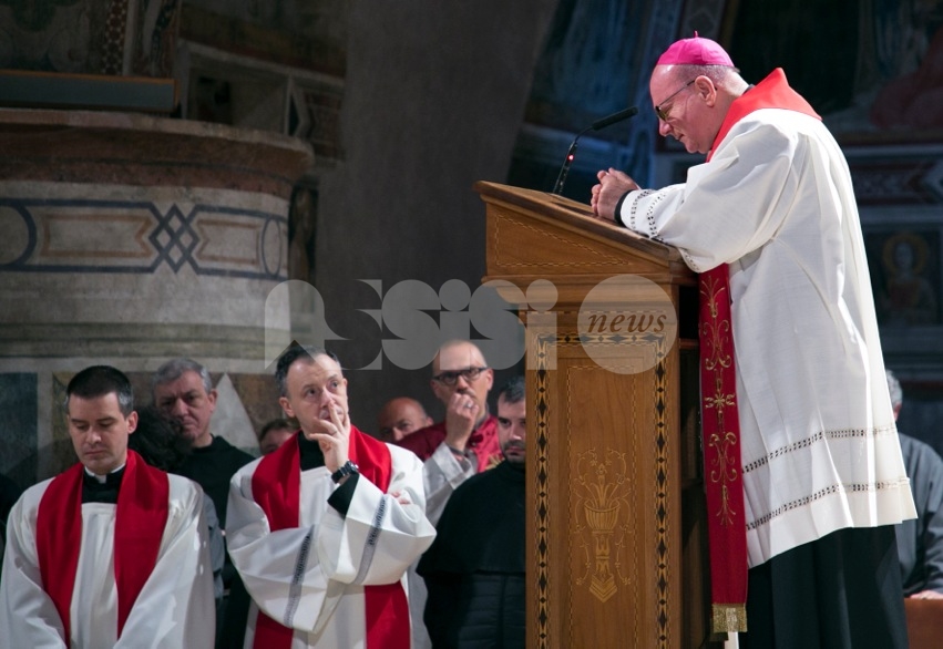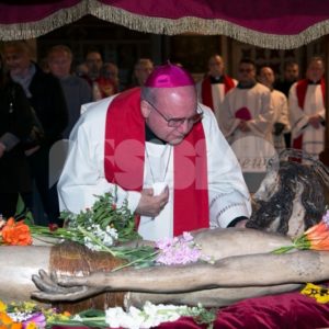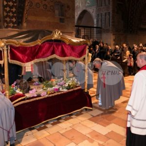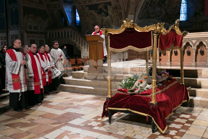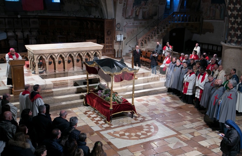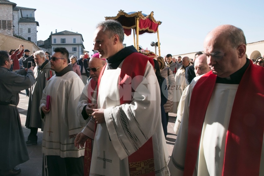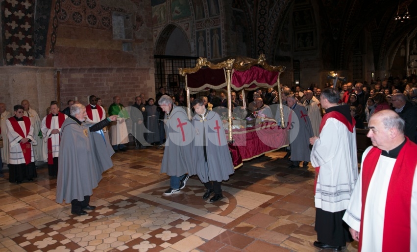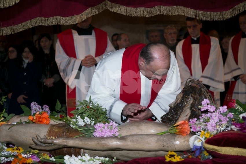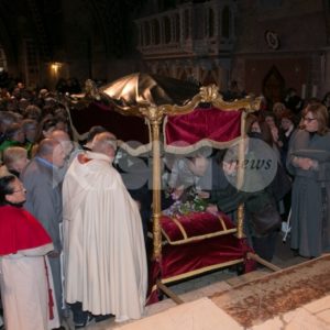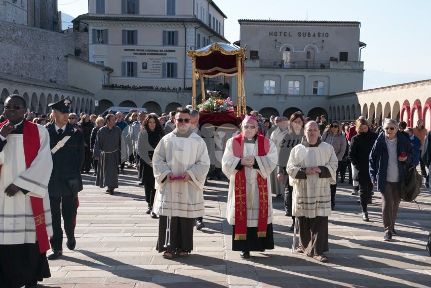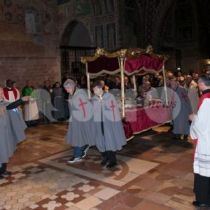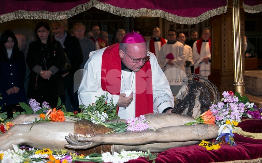 Il venerdì Santo, alle ore 6,45, dopo la celebrazione dell’ufficio delle Letture, il Cristo Morto è trasferito dalla Cattedrale di San Rufino alla Basilica Papale di San Francesco con un percorso che passa per i principali conventi e monasteri cittadini. Nel pomeriggio nella chiesa di S. Maria Maggiore si celebrano “Tre Ore di Agonia”.