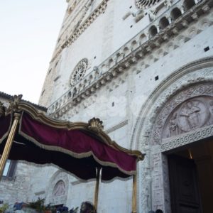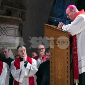 Mercoledì 17 aprile alle ore 16,30 è in programma la messa crismale nella cattedrale di San Rufino. Il Giovedì Santo, nella Cattedrale di S. Rufino alle 17.30, la celebrazione in Coena domini e, a seguire, “Scavigliazione” (ovvero la Deposizione del Cristo dal Crocefisso), tradizione che prende ispirazione da una lauda trecentesca sulla Passione, denominata appunto “Lauda della Scavigliazione”.