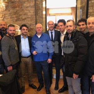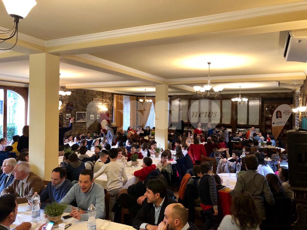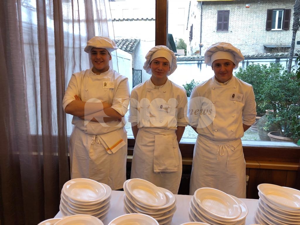 È seguita “La scuola in Taverna”. I Priori Serventi 2019 e l’Associazione dei Priori del Piatto di Sant’Antonio Abate, in collaborazione con l’Istituto Alberghiero di Assisi, hanno offerto agli studenti la degustazione del tradizionale Piatto (offerto da Gemos | Ristorazione Scolastica). Era presente anche la presidente del consiglio, Donatella Casciarri, insieme agli assessori Paggi e Pettirossi. Nel pomeriggio in piazza Garibaldi, il Piatto 2019 di Sant’Antonio ha offerto lo spettacolo del tradizionale focaraccio dedicato a Sant’Antonio Abate e alla cittadinanza. (Continua dopo il video).
