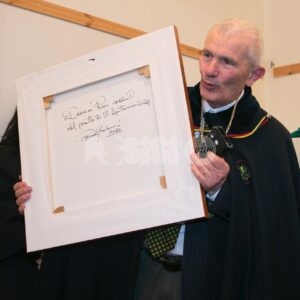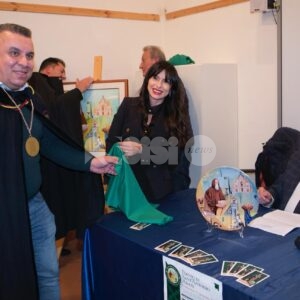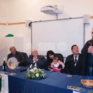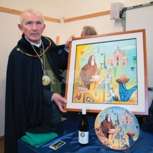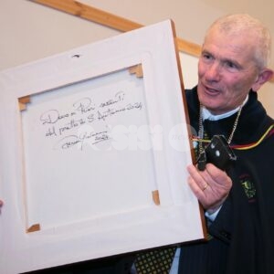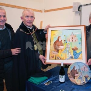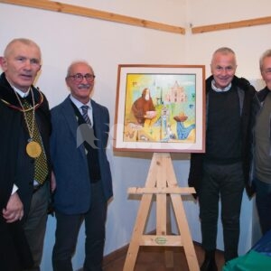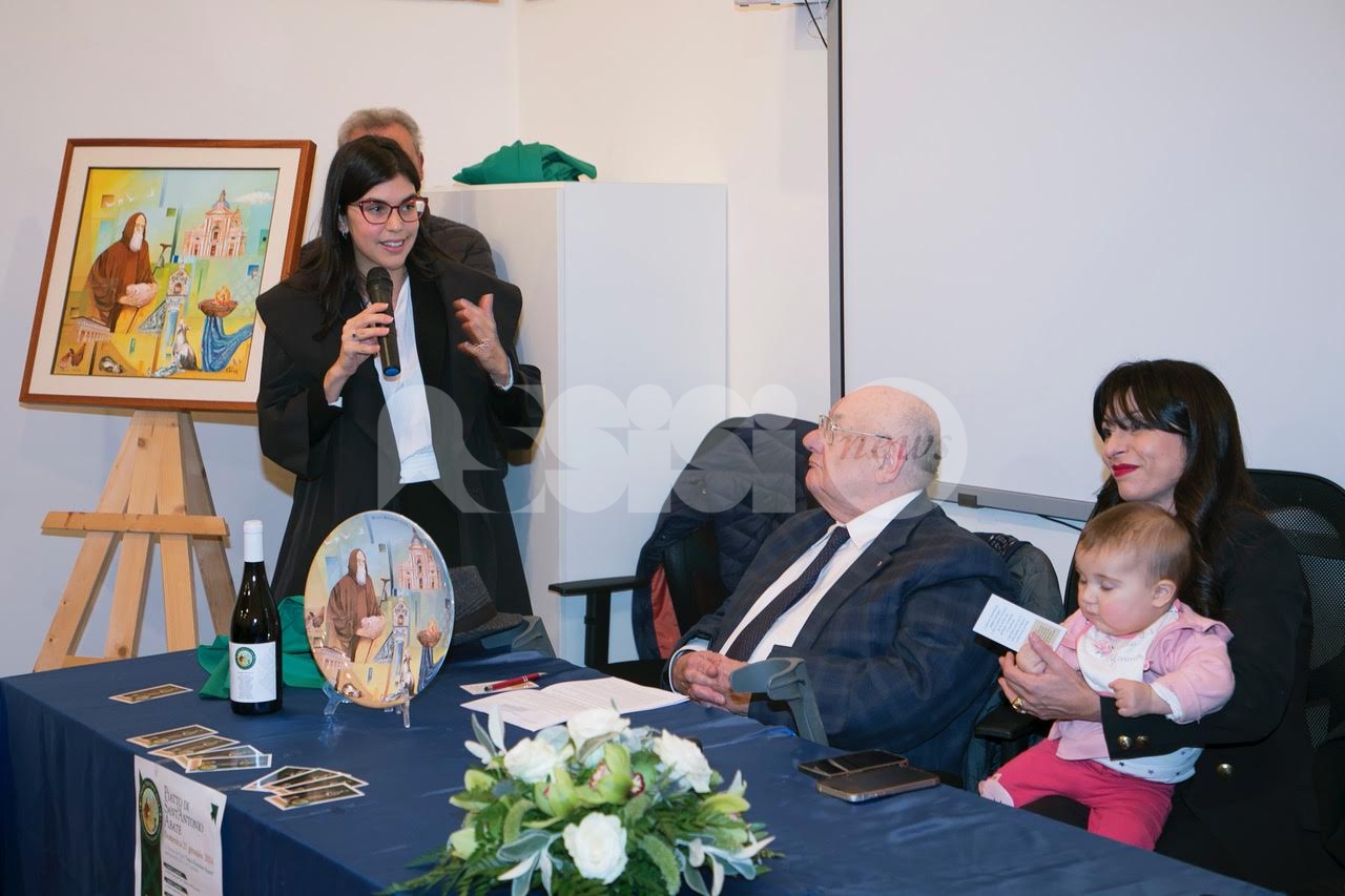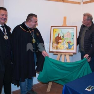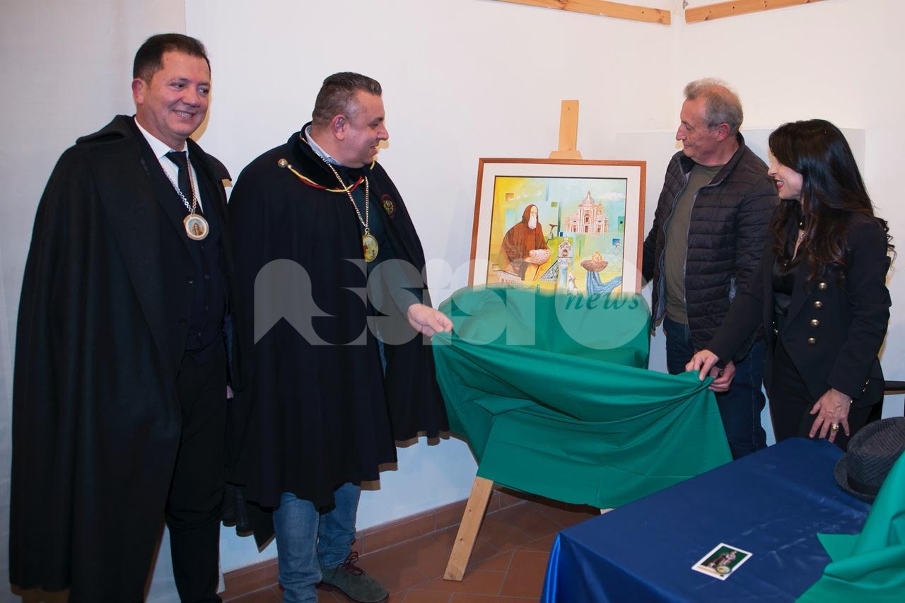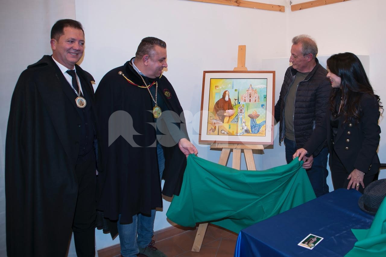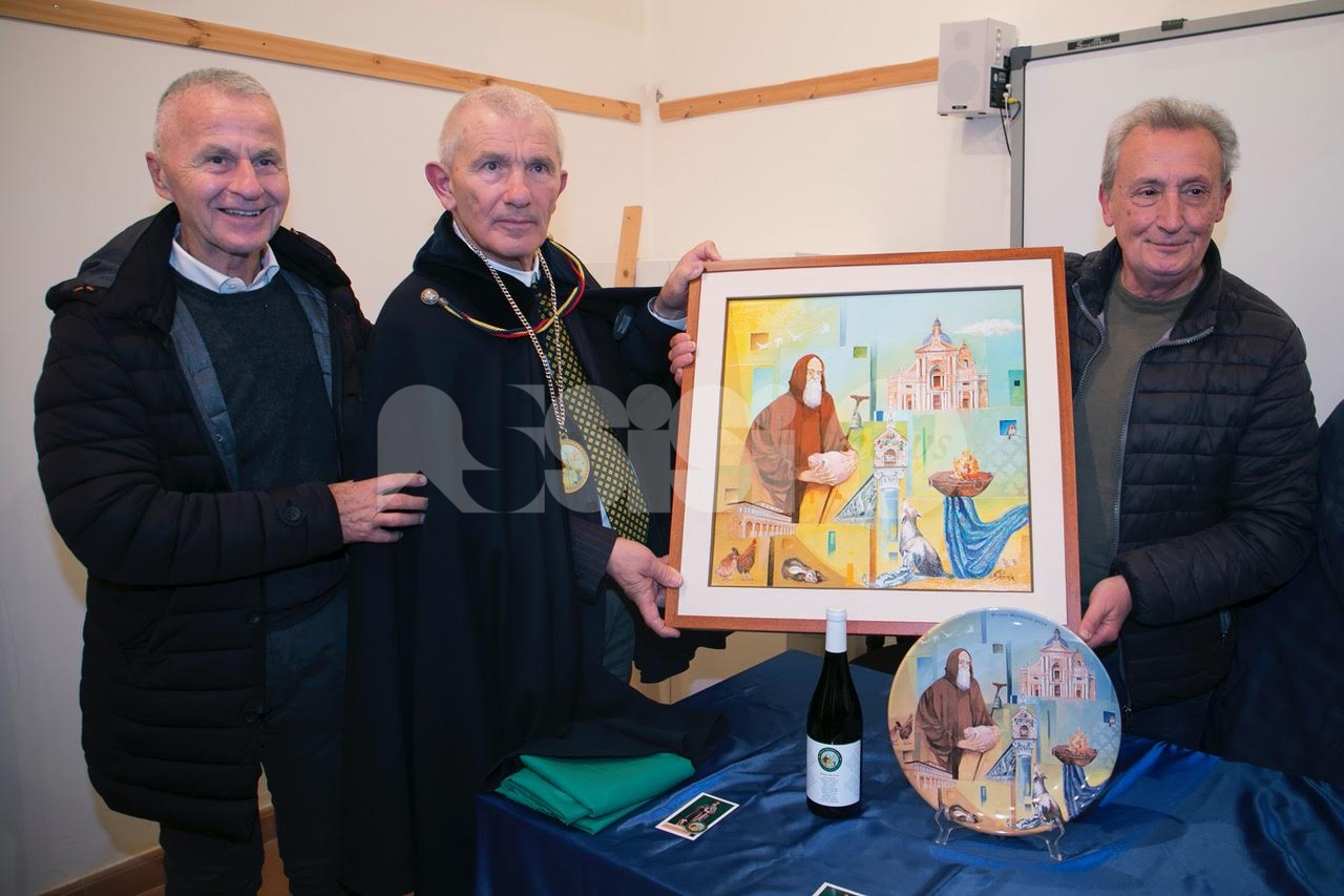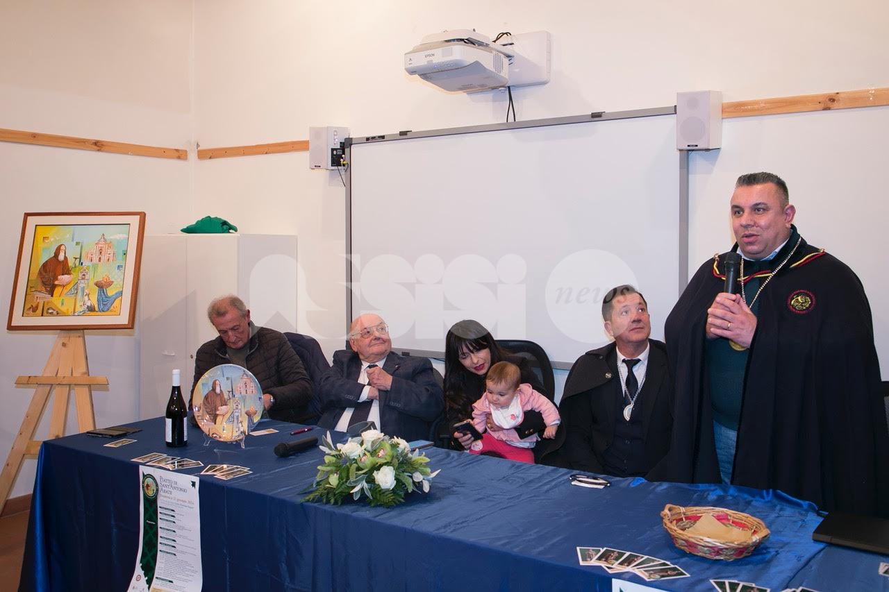 Nel corso del pomeriggio è stata svelata anche l’opera dell’artista Giovanni Perna, scelta come immagine rappresentativa della Prioranza 2024. Giovanni Perna, classe 1952, artista poliedrico, è nato ad Ercolano (Napoli) nel 1951 ma dal 1973 risiede in Umbria, dove ha frequentato negli anni ‘90, gli studi dei pittori Miguel Lombroni e del Maestro Raffaele Tarpani. Ha partecipato a numerose estemporanee vincenti premi e segnalazioni dalle giurie e oltre a partecipare a collettive ha anche organizzato esposizioni di sue personali, riscuotendo apprezzamenti di pubblico e critica. Presentate inoltre la bottiglia del vino del Piatto di Sant’Antonio 2024 e l’etichetta, e il piatto in ceramica.